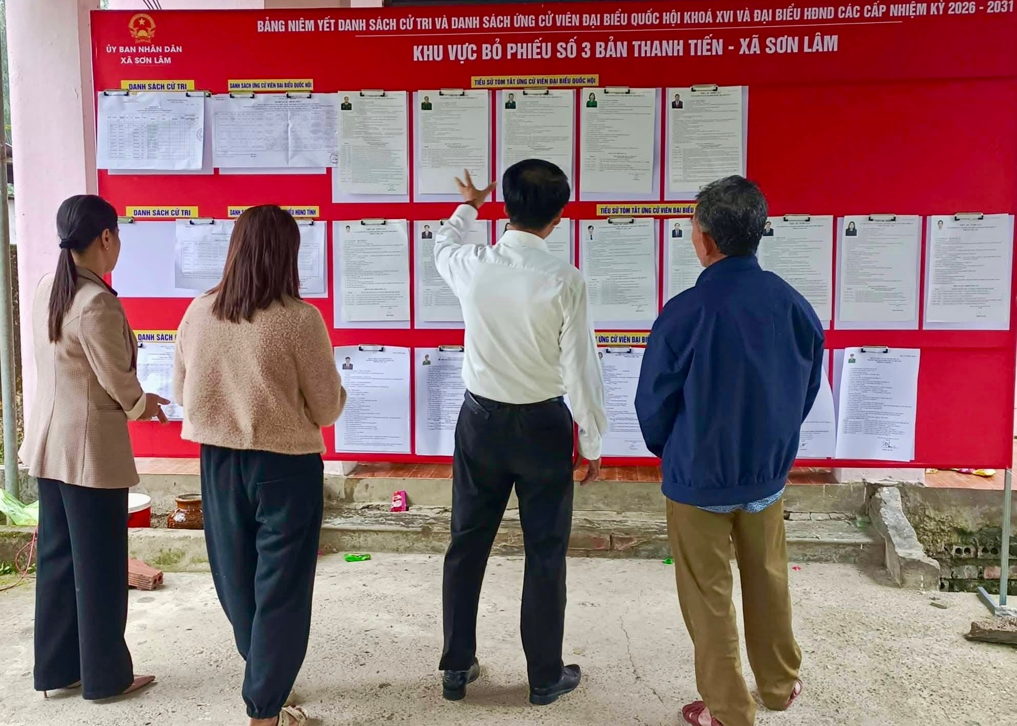 Lãnh đạo xã Sơn Lâm kiểm tra công tác chuẩn bị bầu cử