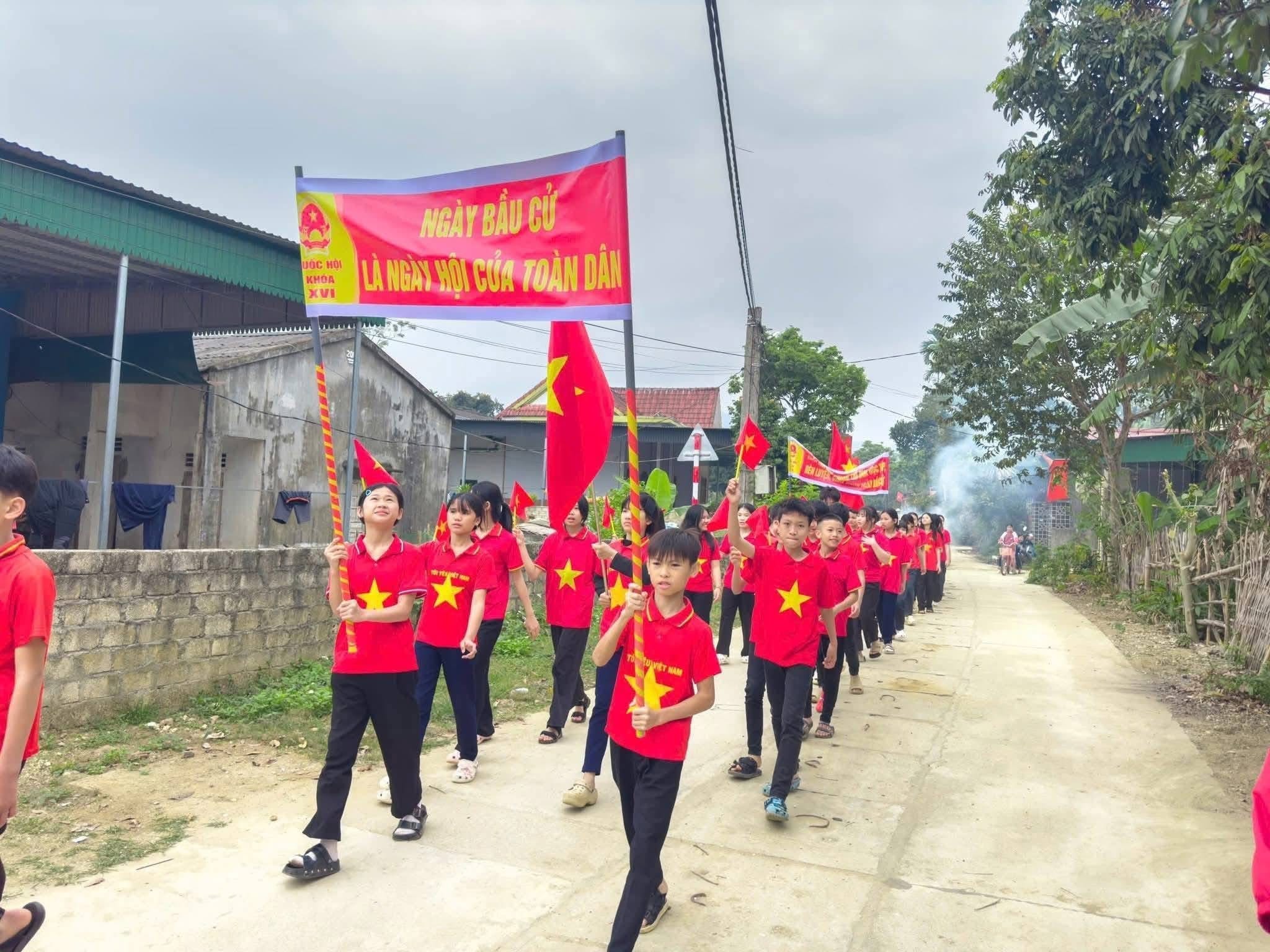 Cùng với đó, các tổ chức đoàn thể, đoàn viên thanh niên, hội viên phụ nữ và học sinh cũng tham gia các hoạt động cổ động, diễu hành tuyên truyền với cờ đỏ, biểu ngữ, góp phần lan tỏa không khí sôi nổi hướng tới ngày bầu cử.