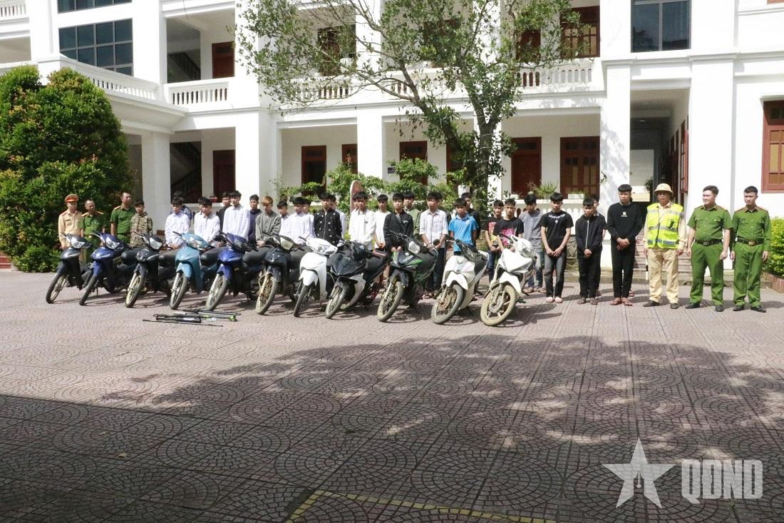 Hai nhóm đối tượng trên có tuổi đời từ 14 đến 19 tuổi, di chuyển trên hàng chục xe máy, mang theo các loại hung khí như kiếm, giao, vỏ chai bia thủy tinh, nỏ bắn đạn bi sắt…đến địa bàn xã Tân Kỳ đánh nhau. Quá trình điều khiển xe mô tô trên đường cả 2 nhóm đối tượng đều không đội mũ bảo hiểm, nẹt pô, bấm còi inh ỏi, lạng lách đánh võng, mang theo số lượng lớn hung khí, gây mất an ninh trật tự. Ngay sau khi tiếp nhận thông tin từ người dân, Công an xã Tân Kỳ chủ trì, phối hợp với công an các xã liên đã nhanh chóng triển khai lực lượng truy bắt các đối tượng có liên quan, kịp thời ngăn chặn vụ việc nghiêm trọng. Tính đến ngày 20-10, cơ quan công an đã triệu tập, bắt giữ 47 đối tượng về hành vi gây rối trật tự công cộng. Trong đó, công an xã Tân Kỳ đang củng cố hồ sơ và tạm giữ hình sự 24 đối tượng để xử lý theo quy định của pháp luật.