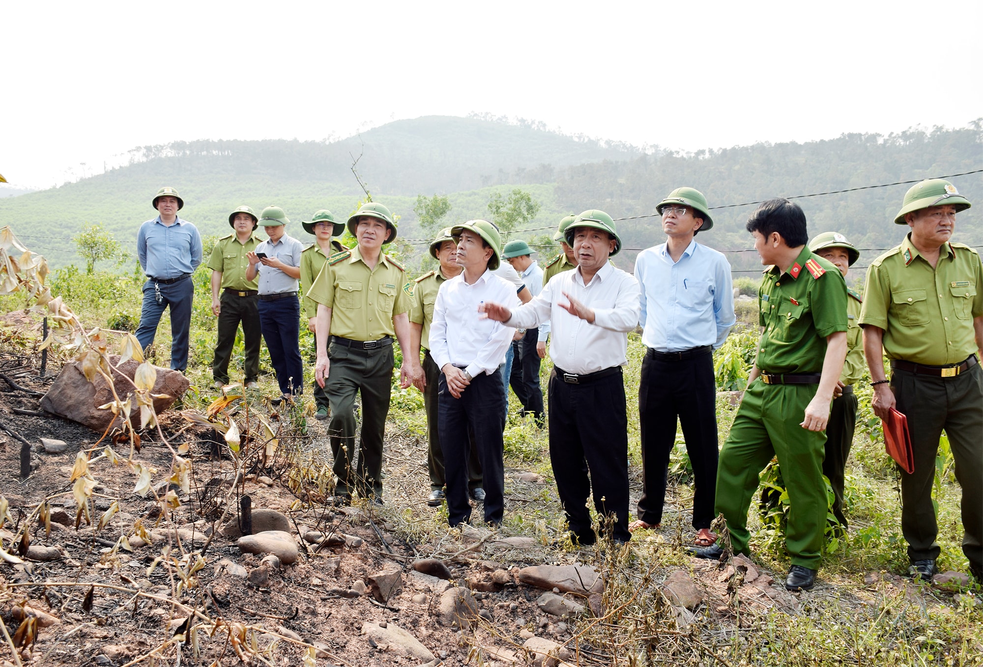 Phó Chủ tịch UBND tỉnh Nguyễn Văn Đệ kiểm tra công tác phòng, chống cháy rừng tại các địa phương. Ảnh: H.P