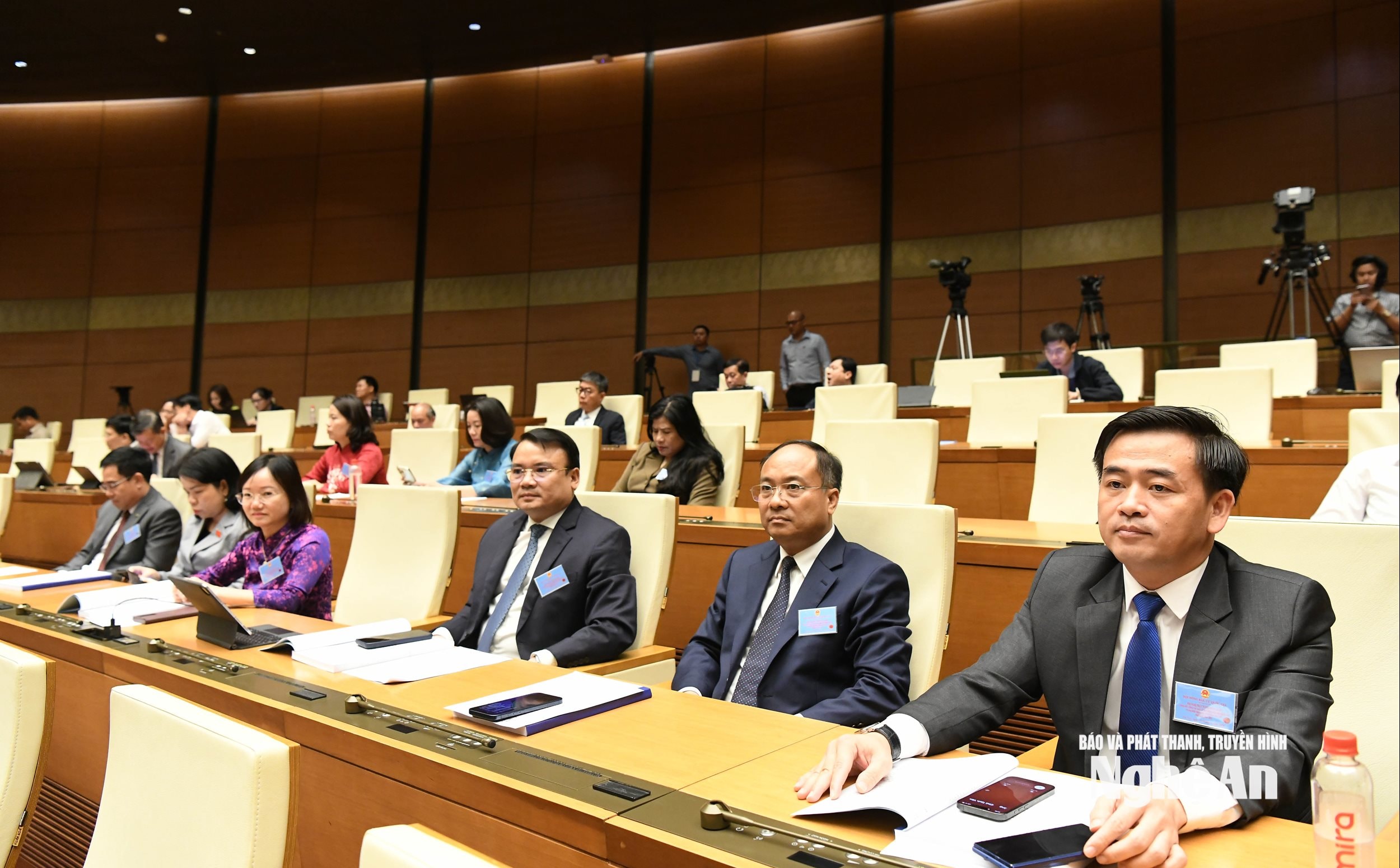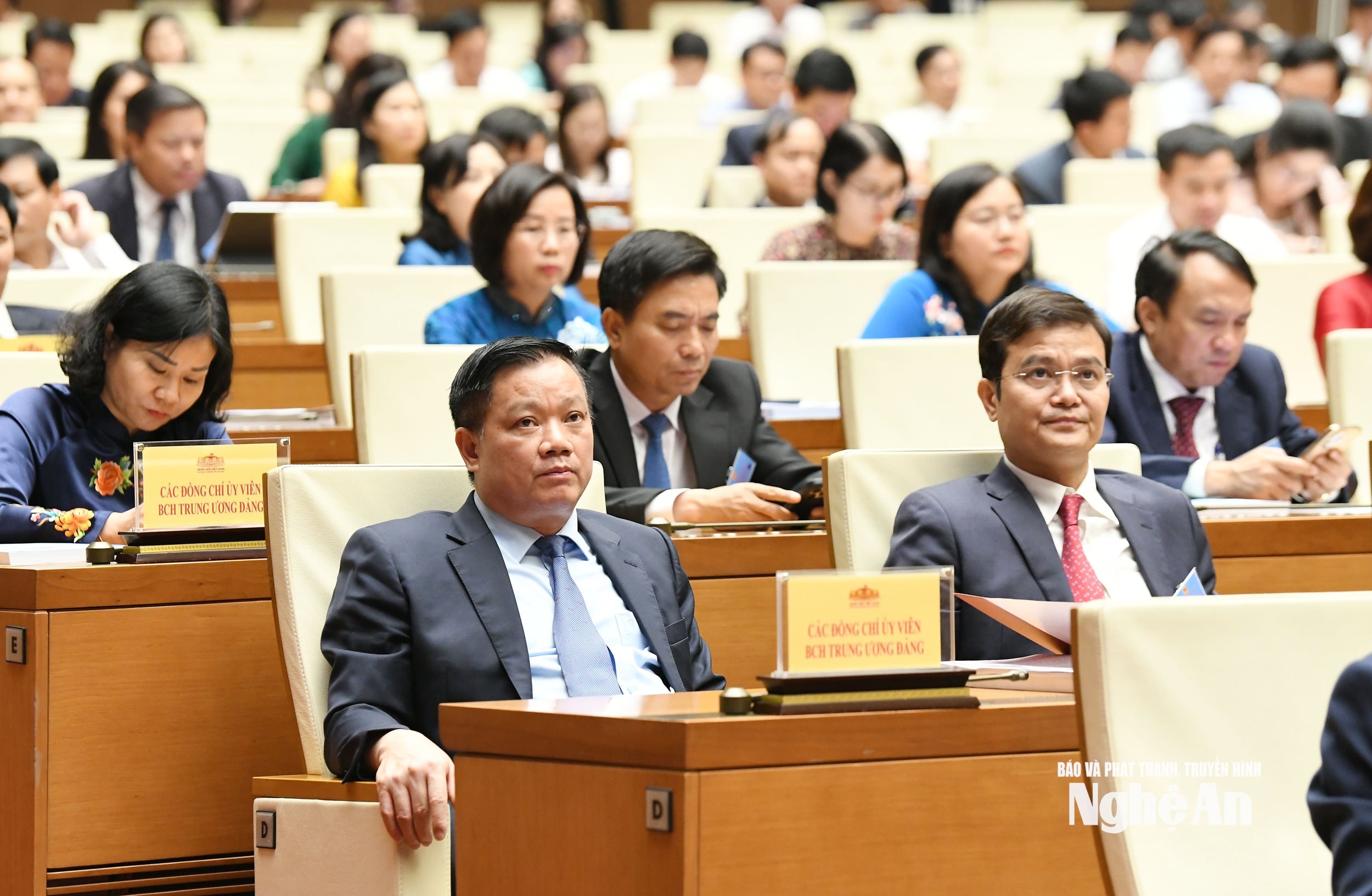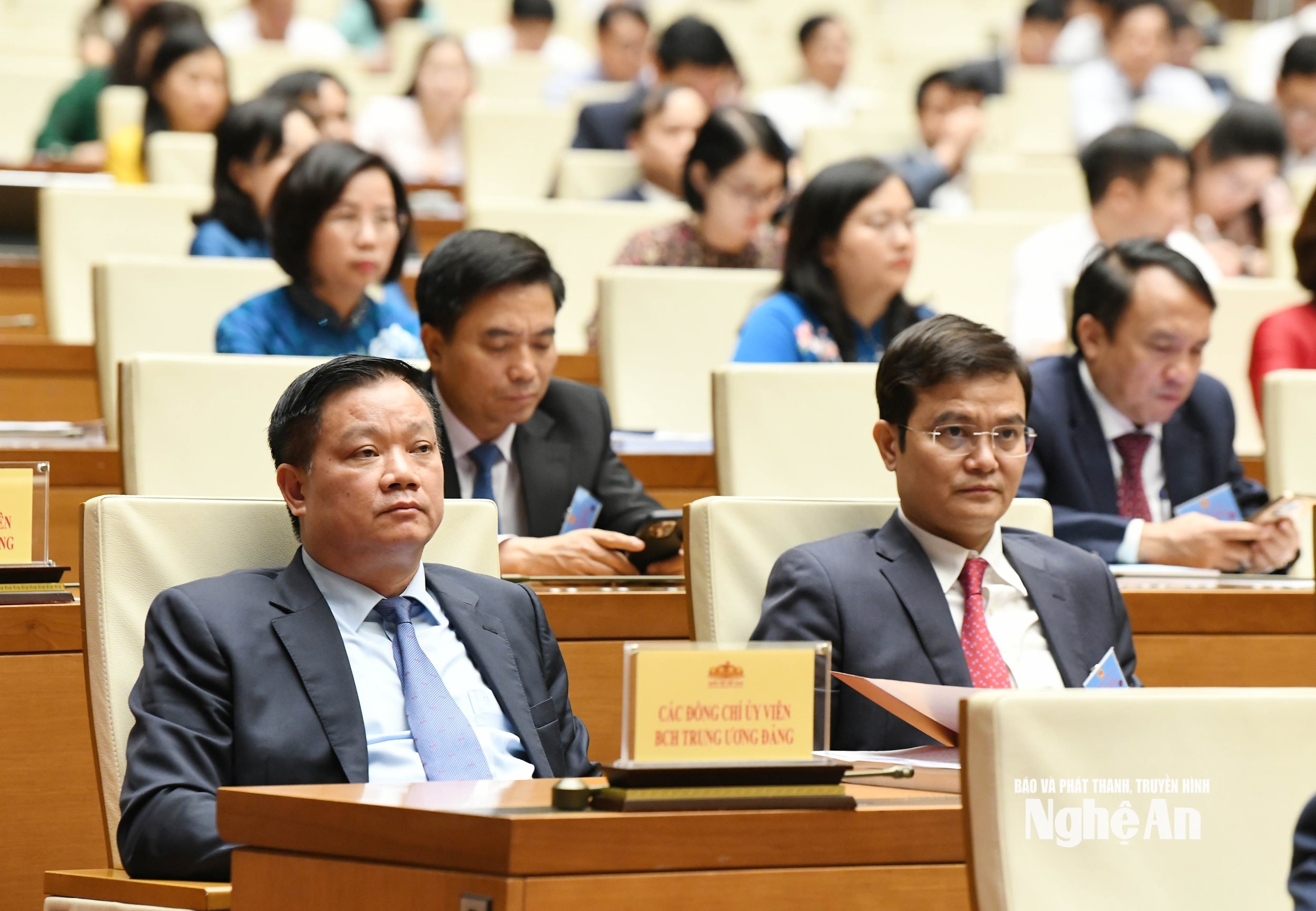 Các đại biểu đoàn Nghệ An dự hội nghị tại điểm cầu Nhà Quốc hội. Ảnh: Lâm Hiển