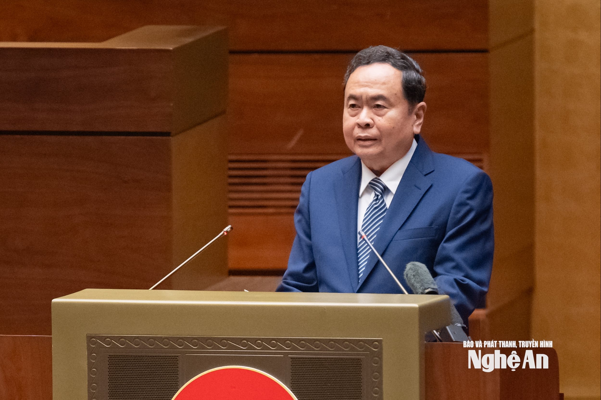 Đồng chí Trần Thanh Mẫn - Ủy viên Bộ Chính trị, Chủ tịch Quốc hội, Chủ tịch Hội đồng Bầu cử Quốc gia phát biểu khai mạc hội nghị. Ảnh: Lâm Hiển