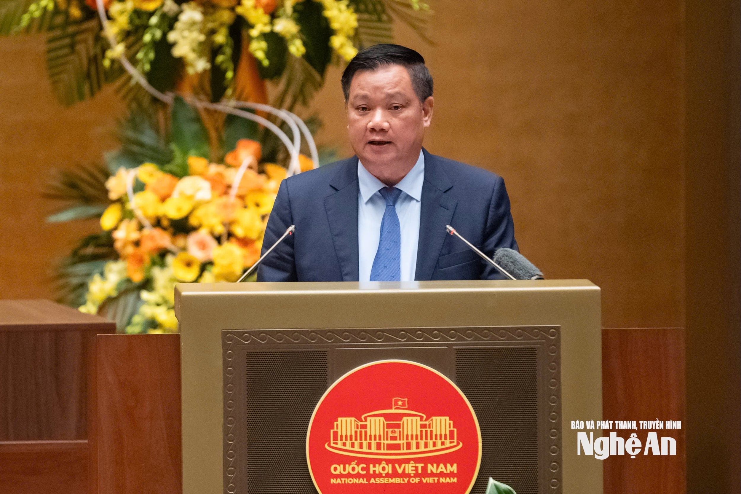 Đồng chí Nguyễn Khắc Thận - Ủy viên Ban Chấp hành Trung ương Đảng, Bí thư Tỉnh ủy, Trưởng Ban Chỉ đạo bầu cử tỉnh Nghệ An dự tại điểm cầu Nhà Quốc hội và phát biểu tham luận.