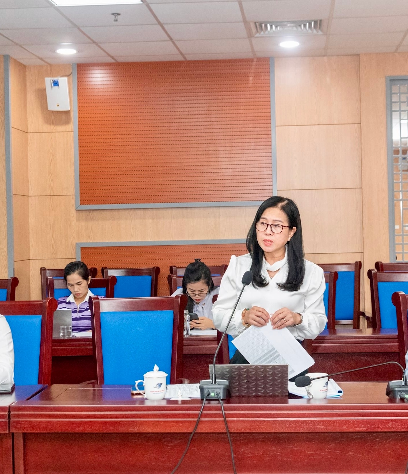 Phó Giám đốc Sở Nông nghiệp và Môi trường Nghệ An Võ Thị Nhung trình bày báo cáo. Ảnh: MQ