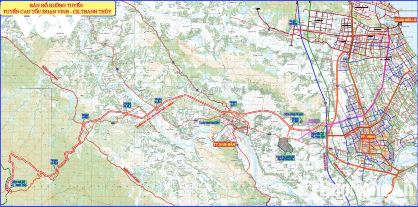 Bản đồ hướng tuyến cao tốc đoạn Vinh – Thanh Thủy (Nghệ An).
