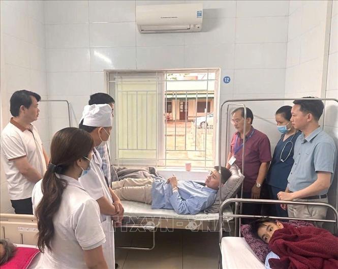 Đoàn công tác Sở Y tế Nghệ An thăm hỏi, động viên các bệnh nhân bị ngộ độc tại Bệnh viện Đa khoa Diễn Châu. Ảnh: TTXVN phát
