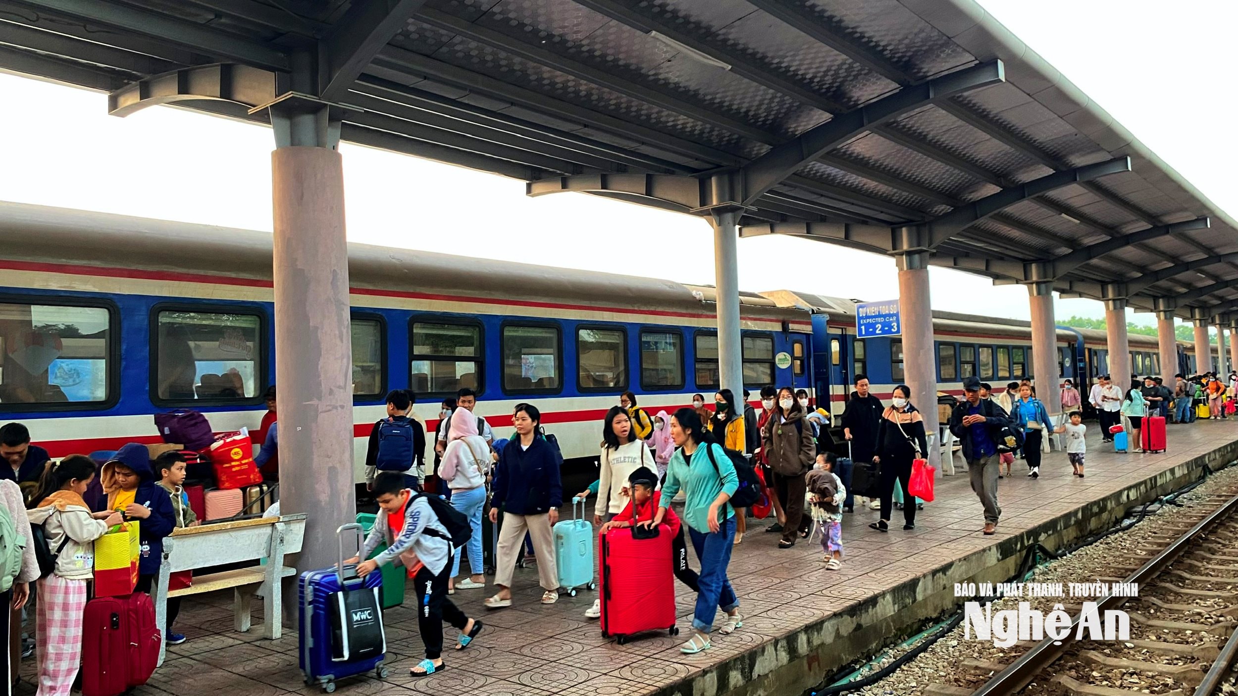 Người dân về Nghệ An nghỉ lễ trong sáng 30/4 tại ga Vinh. Ảnh: Q.A