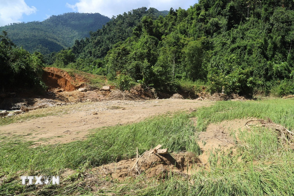 Lũ ống, lũ quét gây thiệt hại nghiêm trọng diện tích lúa ruộng của người dân. (Ảnh: Xuân Tiến/TTXVN)