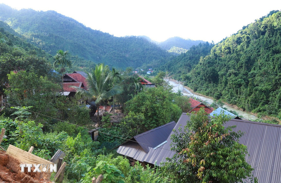 Bản Na Ngân nằm lọt thỏm giữa thung lũng, bao bọc xung quanh là đại ngàn Pù Huống và dãy Pù Hiêng. (Ảnh: Xuân Tiến/TTXVN)