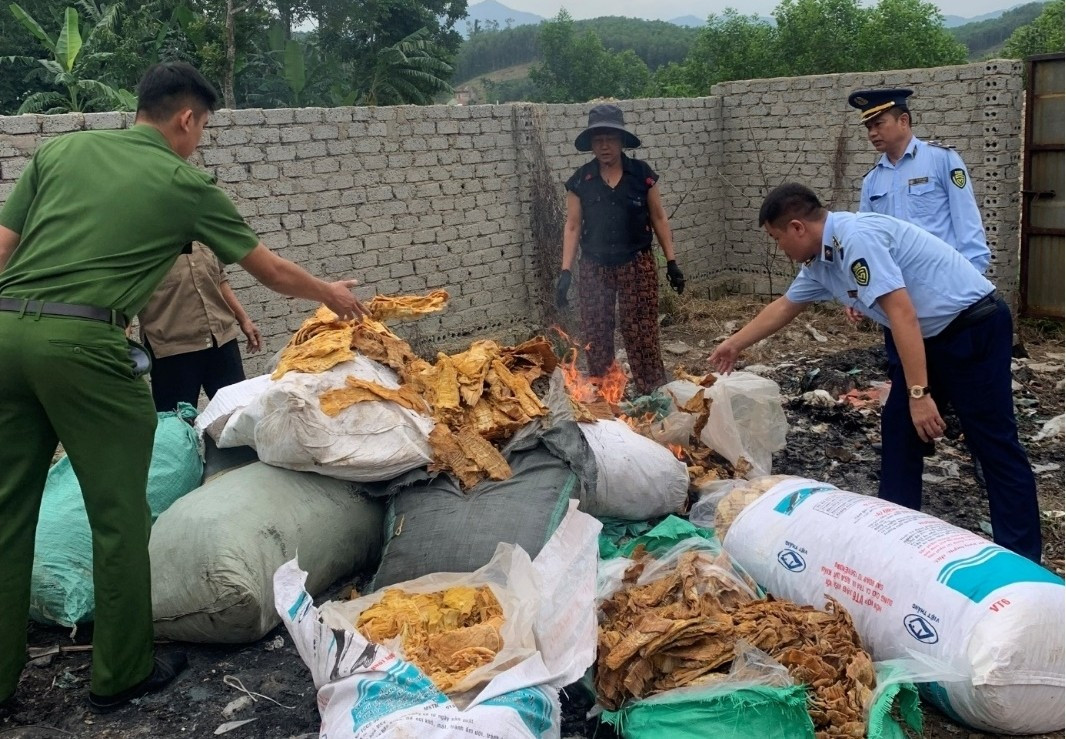 Hình ảnh kiểm tra và tiêu hủy hàng hóa vi phạm/ Ảnh DMS