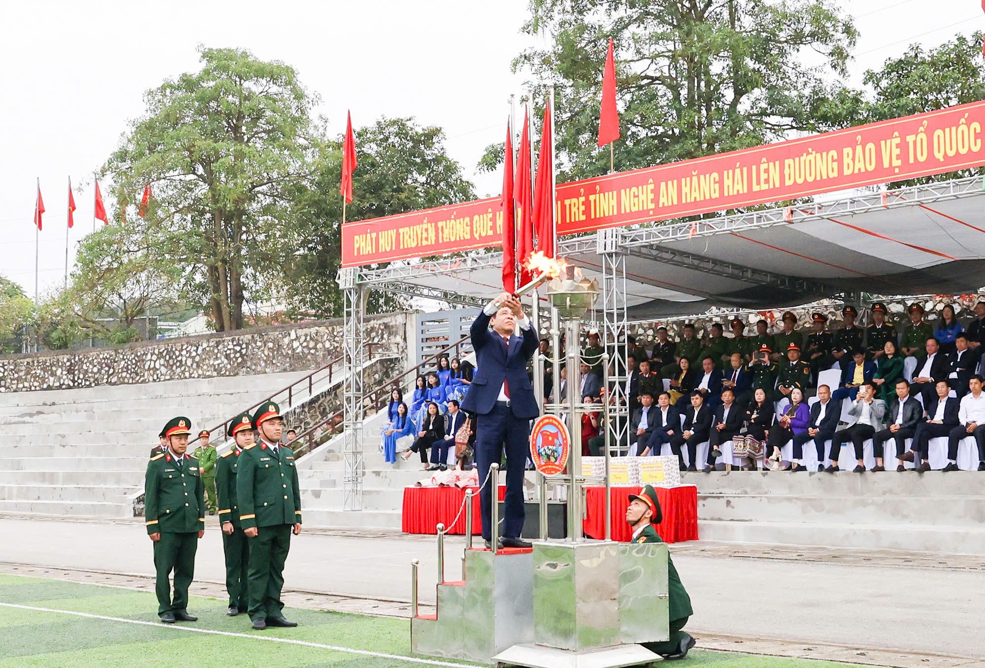 Chủ tịch UBND tỉnh Nghệ An Võ Trọng Hải thắp lửa truyền thống.