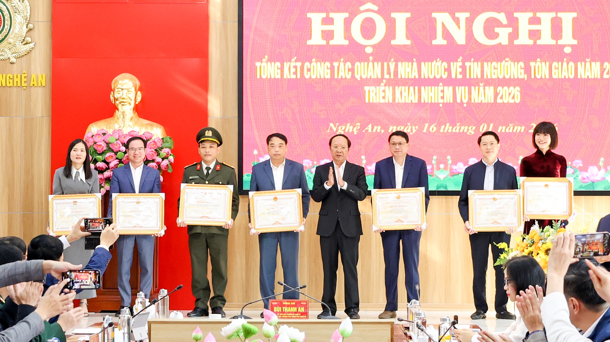 Nhân dịp này, UBND tỉnh Nghệ An đã trao Bằng khen cho 3 tập thể và 5 cá nhân có thành tích xuất sắc trong công tác quản lý nhà nước về tín ngưỡng, tôn giáo năm 2025.