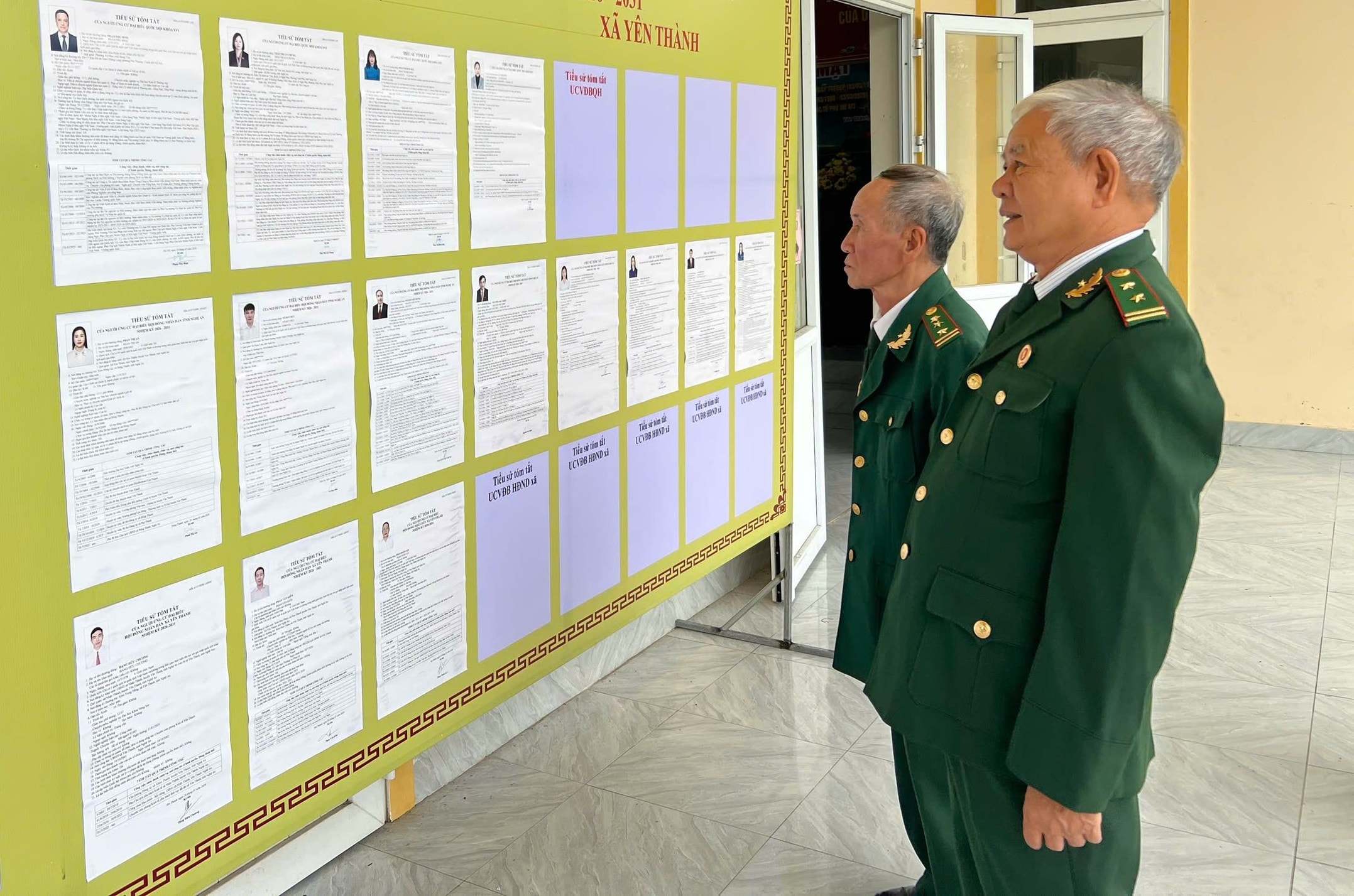 Các cử tri tại UBND xã Yên Thành, Nghệ An tìm hiểu các quy trình bầu cử