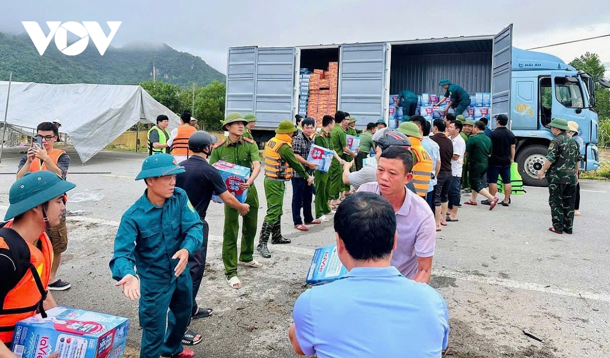 Sáng 1/10, một số đoàn thiện nguyện khắp cả nước đã có mặt tại vùng bị thiệt hại nặng do bão lụt, hộ trợ các nhu yếu phẩm giúp người dân vơi bớt khó khăn sau bão, chống chọi với lũ lụt.