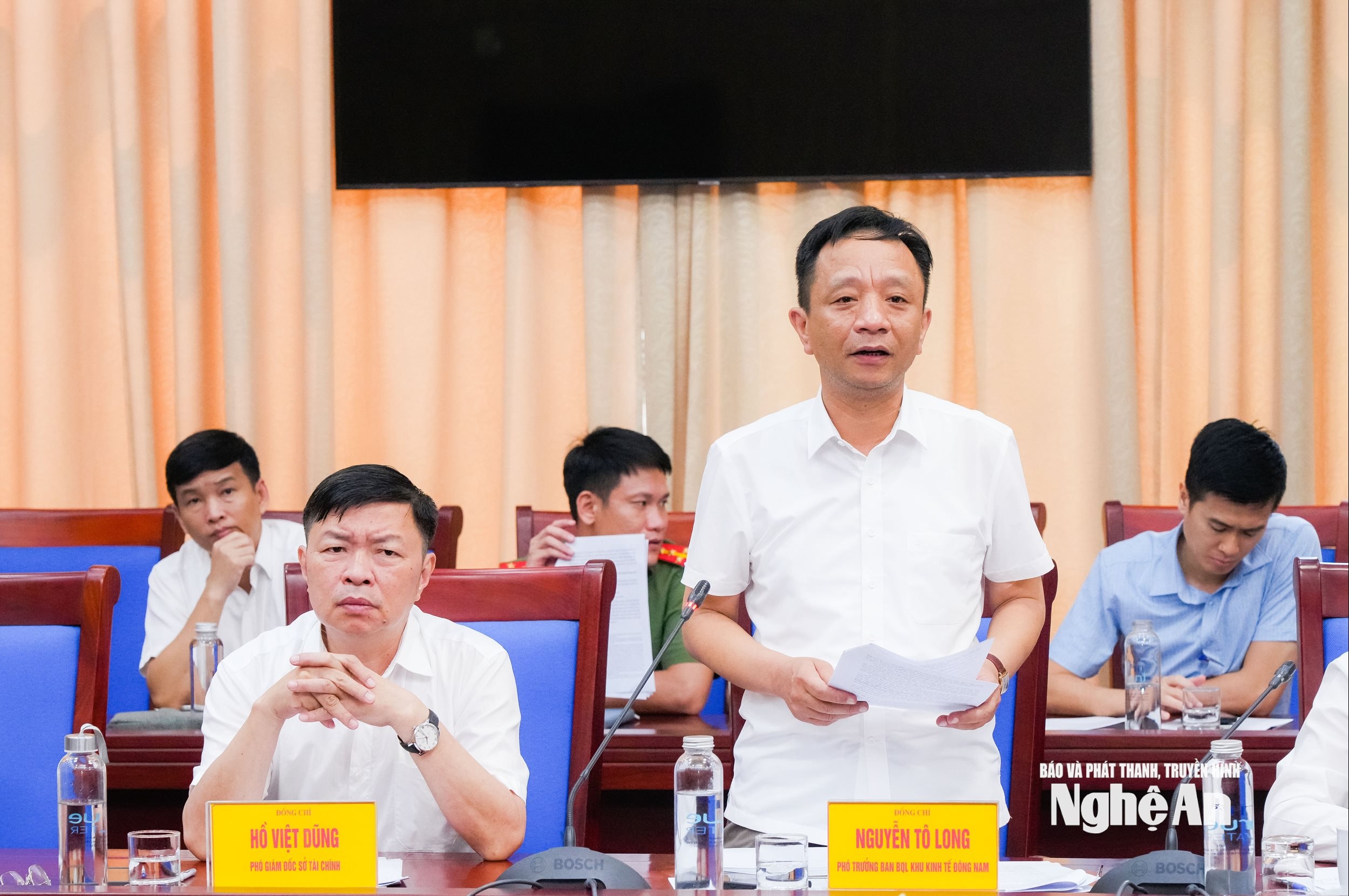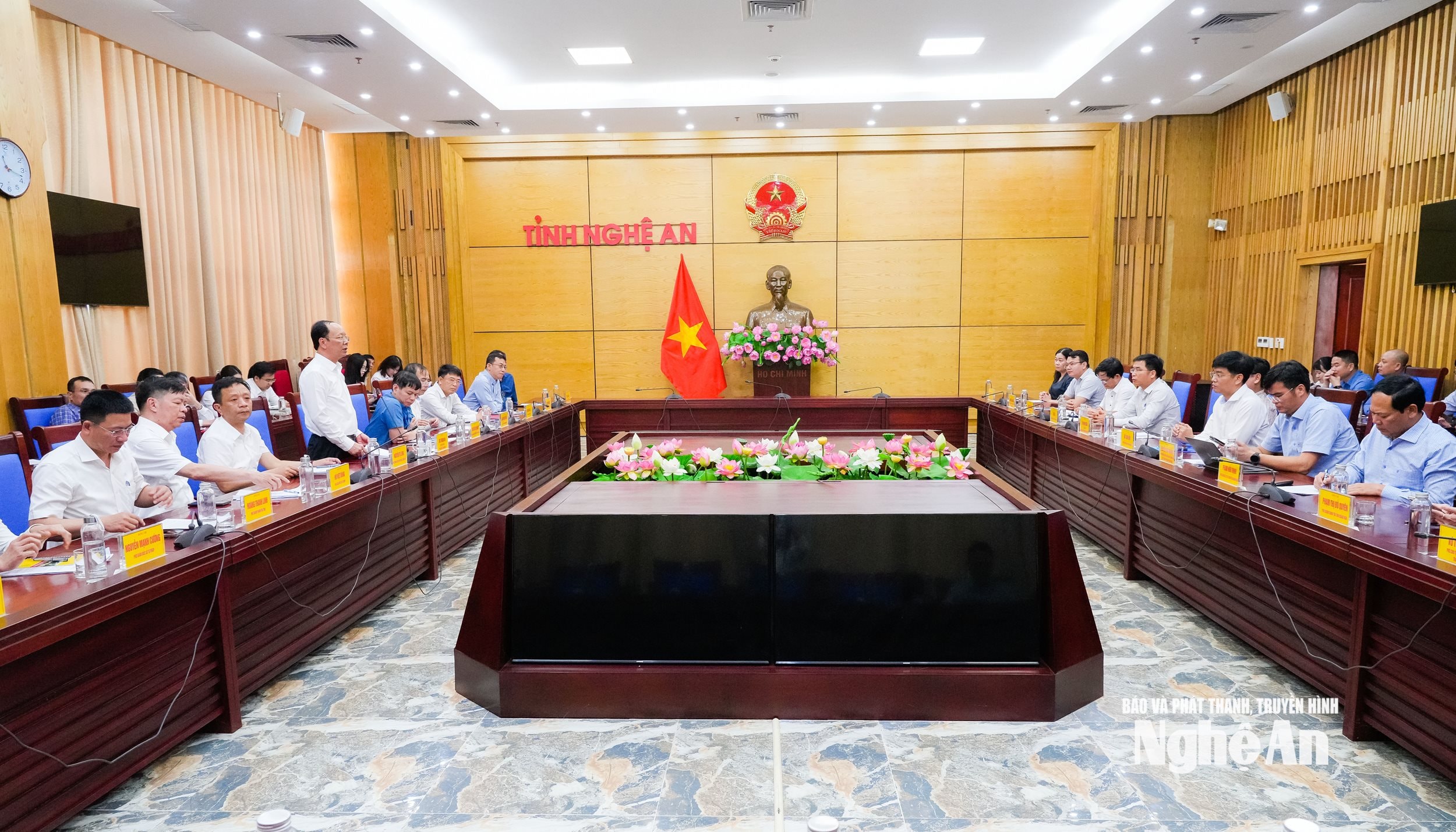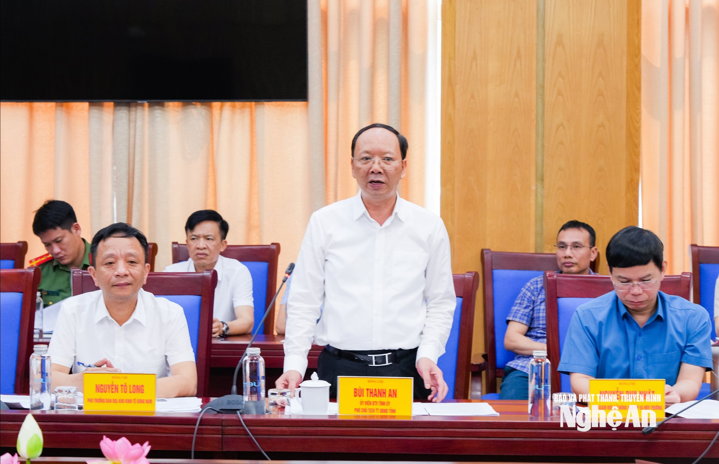 Tiếp đón và làm việc với đoàn có đồng chí Bùi Thanh An - Ủy viên Ban Thường vụ Tỉnh ủy, Phó Chủ tịch Thường trực UBND tỉnh. Cùng dự có đại diện lãnh đạo các sở, ban, ngành, một số xã, phường của tỉnh Nghệ An và đại diện các nhà đầu tư hạ tầng khu công nghiệp trên địa bàn tỉnh.