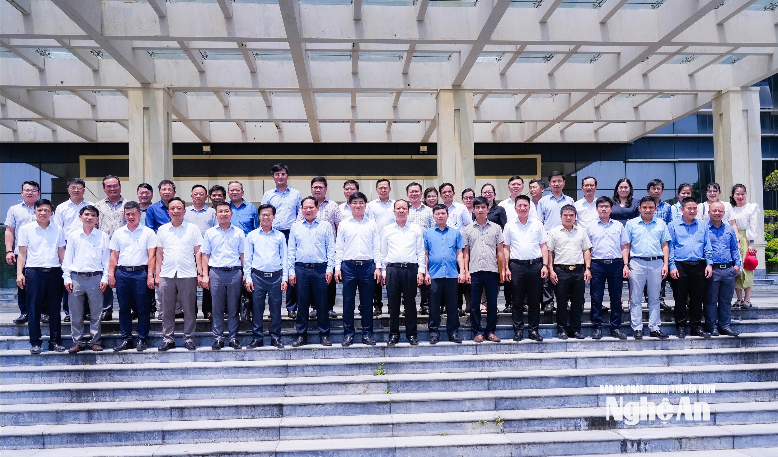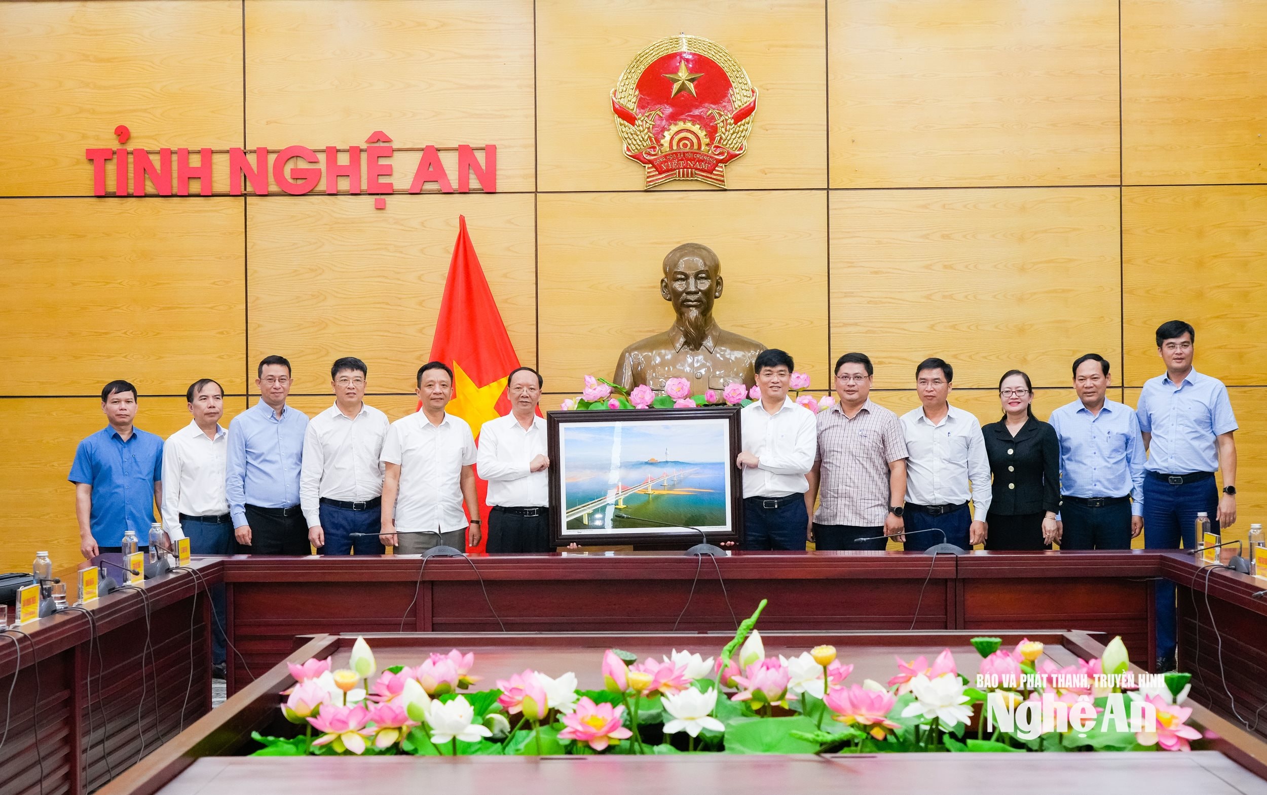 Đoàn công tác của tỉnh Quảng Ngãi chụp ảnh lưu niệm với lãnh đạo tỉnh Nghệ An. Ảnh: Thanh Lê