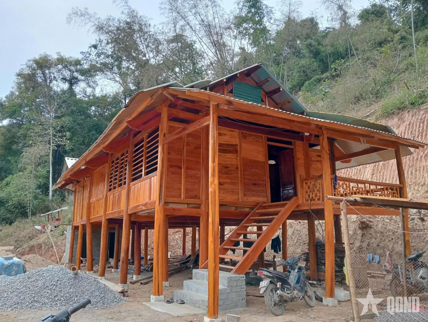 Chủ trương hợp lòng dân ấy đã nhanh chóng phát huy hiệu quả. Tại các bản Huồi Tố 1, Huồi Tố 2, nhiều ngôi nhà mới khang trang đang dần hoàn thiện, tạo nên diện mạo đổi thay rõ nét. Gia đình anh Lương Văn Long, bản Huồi Tố 2, là một trong những hộ chịu thiệt hại nặng nề trong đợt mưa lũ cuối tháng 7-2025.