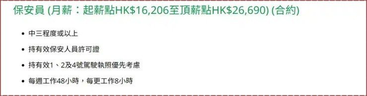 Mức lương bảo vệ ở Hong Kong trong một bài đăng tuyển dụng