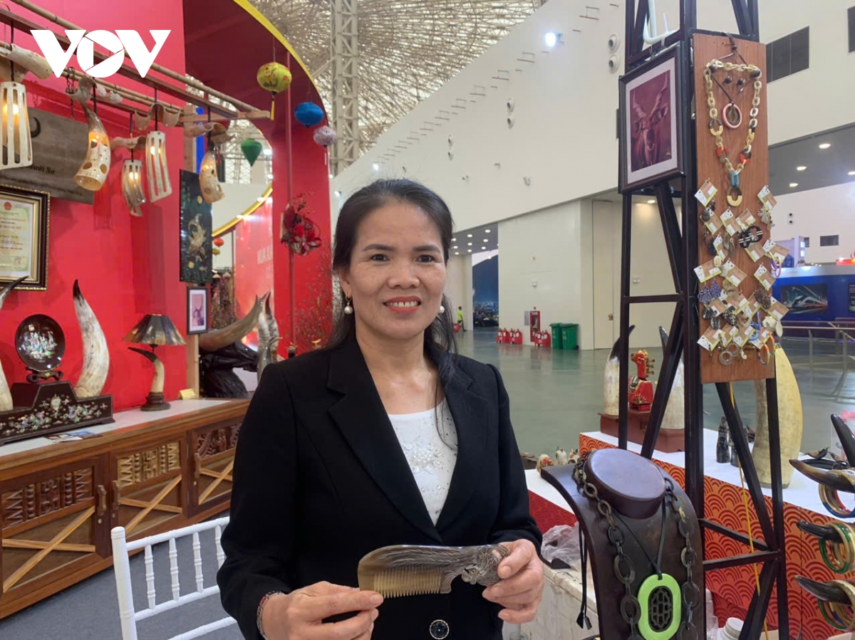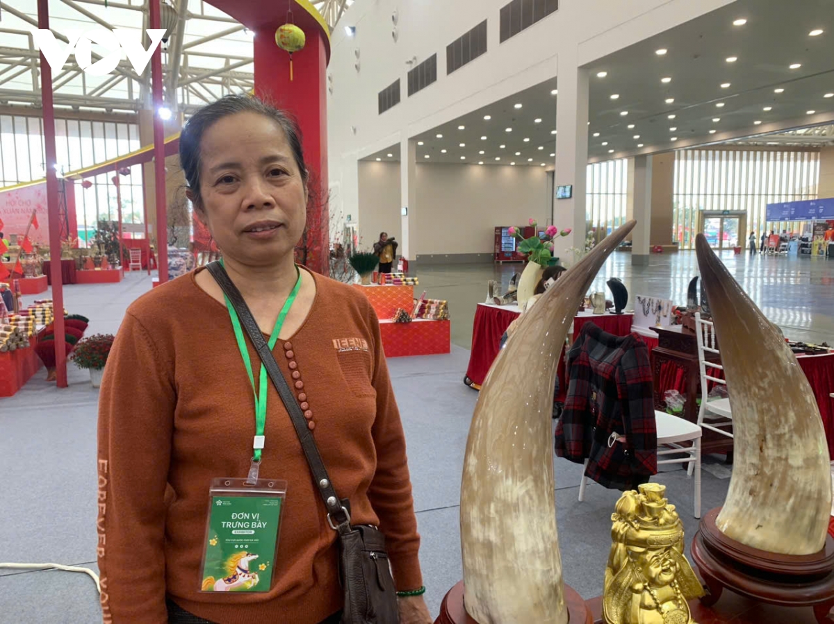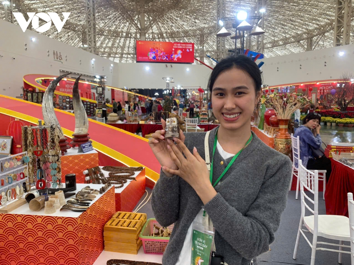 Em Nguyễn Kỳ Duyên tự hào với sản phẩm sừng Thụy Ứng được trưng bày tại Hội chợ Mùa Xuân