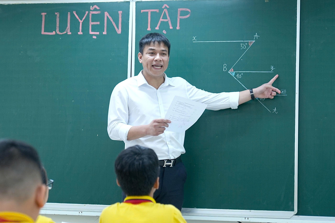 Giáo viên Trường THCS Nguyễn Du, Hà Nội trong một tiết học. Ảnh: TRỌNG QUÂN