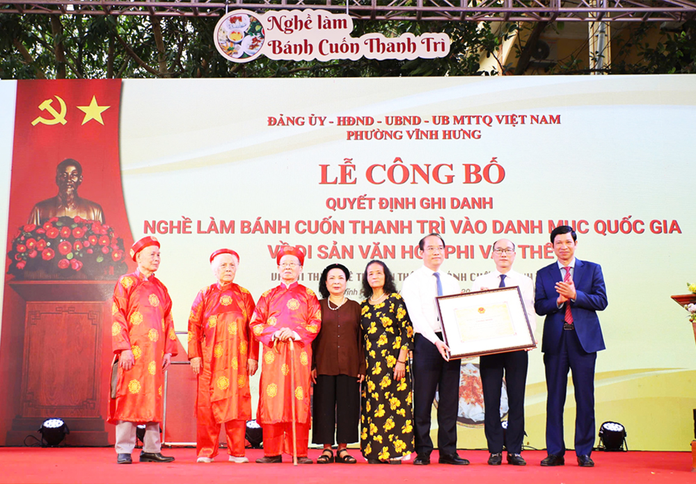 Ngày 18/3/2026, tại phường Vĩnh Hưng, thành phố Hà Nội, Bộ Văn hóa, Thể thao và Du lịch đã trao Quyết định ghi danh nghề làm Bánh cuốn Thanh Trì vào hạng mục Di sản văn hóa phi vật thể quốc gia.