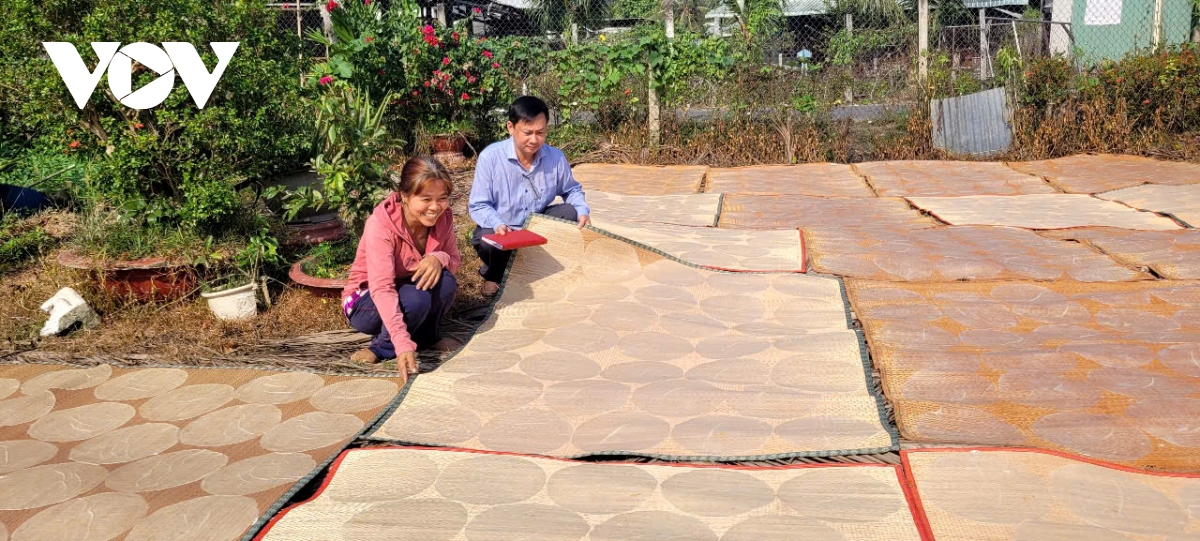 Chiếc bánh phồng làm theo phương pháp thủ công phải phơi nắng
