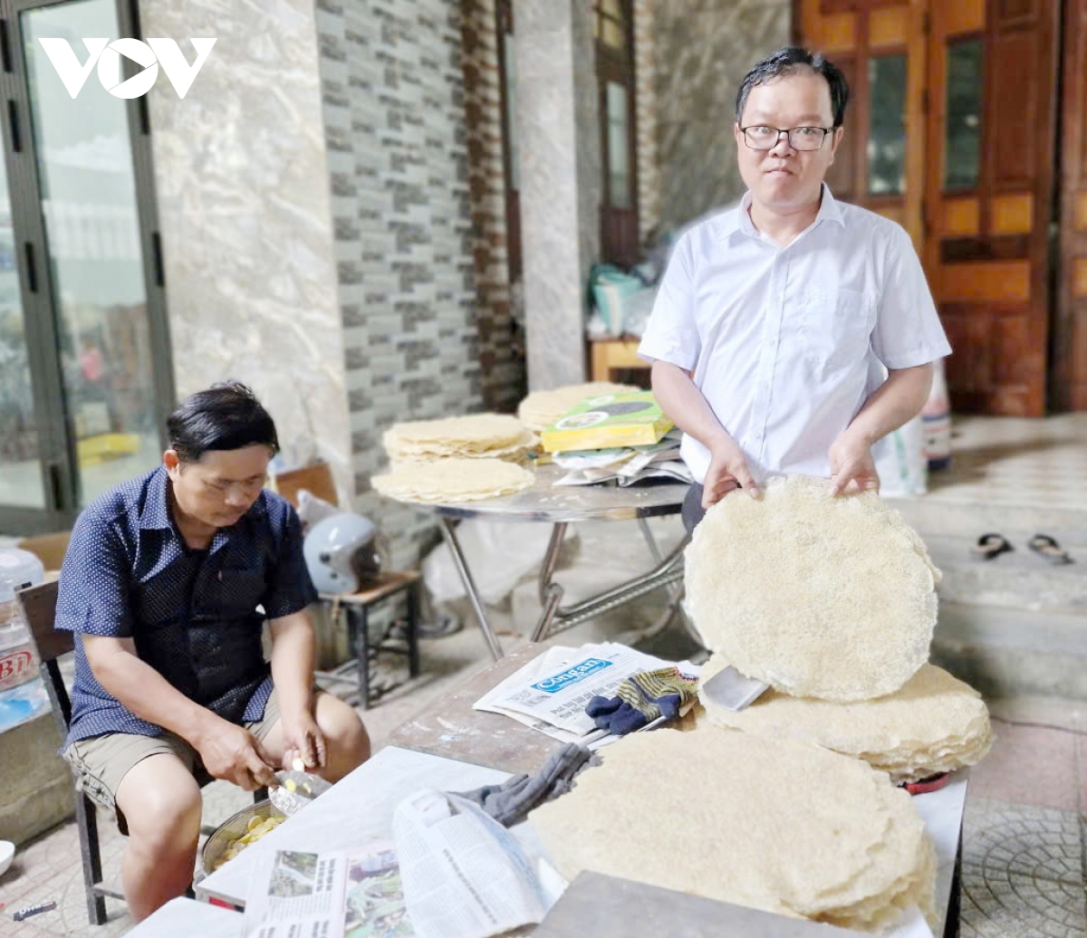 Bên cạnh việc tăng sản lượng, nhiều cơ sở chú trọng đổi mới mẫu mã, bao bì phù hợp nhu cầu thị trường. Cả tháng nay, cơ sở sản xuất bánh tráng của bà Nguyễn Đặng Thái Hòa, ở xã Hòa Vang, thành phố Đà Nẵng luôn đỏ lửa. Hàng ngày, vợ chồng bà Hòa dậy sớm để xay bột, nhóm lò, tráng bánh để kịp bán. Theo bà Nguyễn Đặng Thái Hòa, để chiếc bánh thơm ngon thì nguyện liệu chính là gạo xiệc, loại gạo quê chính gốc xứ Quảng, thêm gia vị đặc trưng như gừng, tỏi, nước mắm và đường, tuyệt đối không phơi nắng mà phải sấy trên bếp than hồng.