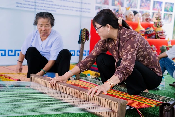 Tái hiện nghề dệt chiếu của đồng bào Khmer.