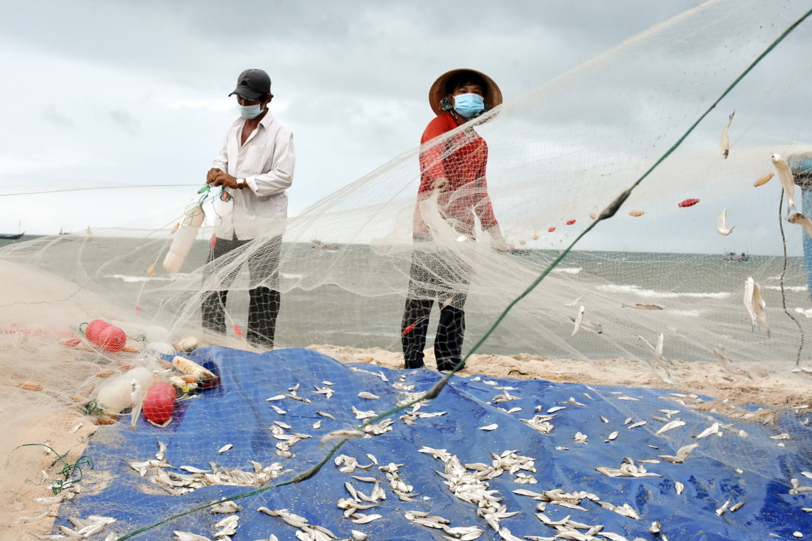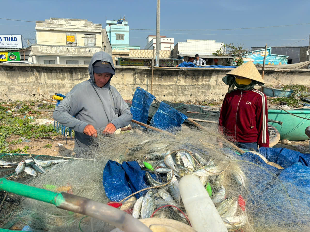 8 giờ, chiếc thuyền thúng của ông Nguyễn Thanh Tâm (xã Hồ Tràm) đã cập bờ. Gỡ từng con cá tươi ngon trong lưới kéo, ông Tâm phấn khởi chia sẻ: “Nay thuyền trúng mánh, sau 5 giờ đánh bắt ngoài biển, thuyền tui thu về gần 1 tạ cá, trị giá khoảng 3 triệu đồng”.