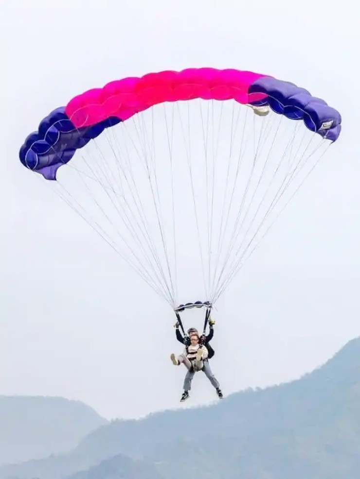Tại sân bay tổng hợp Hồ Thiên Đảo ở Kiến Đức, Chiết Giang (Trung Quốc), nhiều khách du lịch đang trải nghiệm cảm giác hồi hộp khi bay xuyên qua các tầng mây. Đồng hành với họ là các huấn luyện viên nhảy dù - người chịu trách nhiệm mở khoang trực thăng, bung dù và mang lại “giá trị cảm xúc” cho khách hàng.