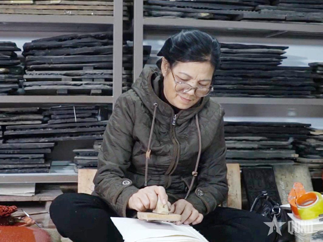 Thế hệ tiếp nối trong gia đình Nghệ nhân Ưu tú Nguyễn Đăng Chế đang gìn giữ từng sắc màu, từng nét khắc của tranh dân gian Đông Hồ.