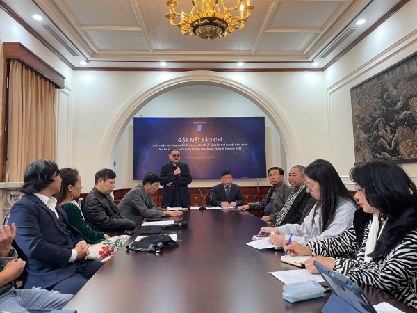 PGS.TS, nhạc sĩ Đỗ Hồng Quân, Chủ tịch Liên hiệp các Hội Văn học, Nghệ thuật Việt Nam trao đổi với báo chí về festival.