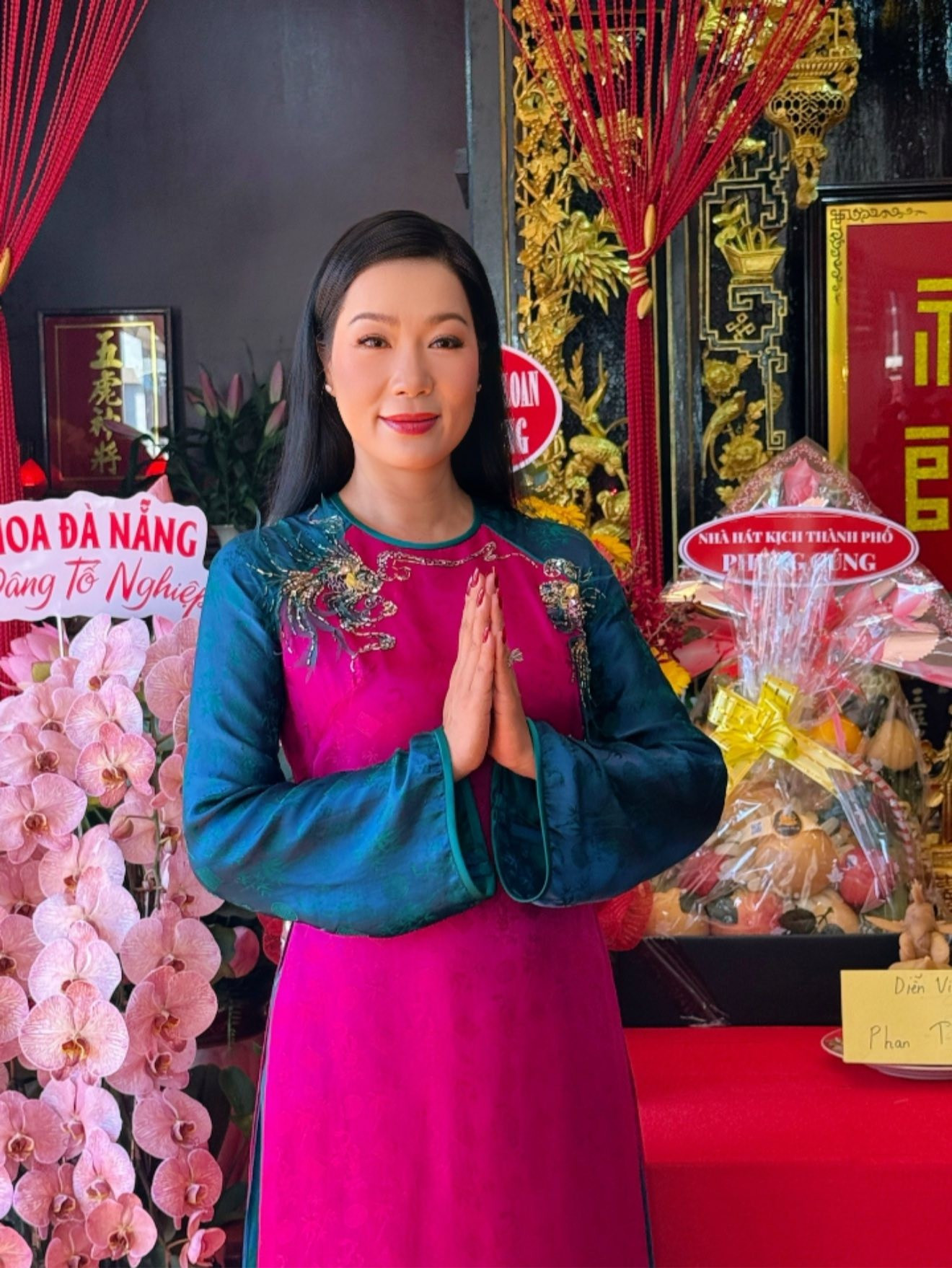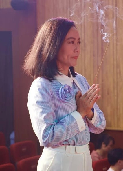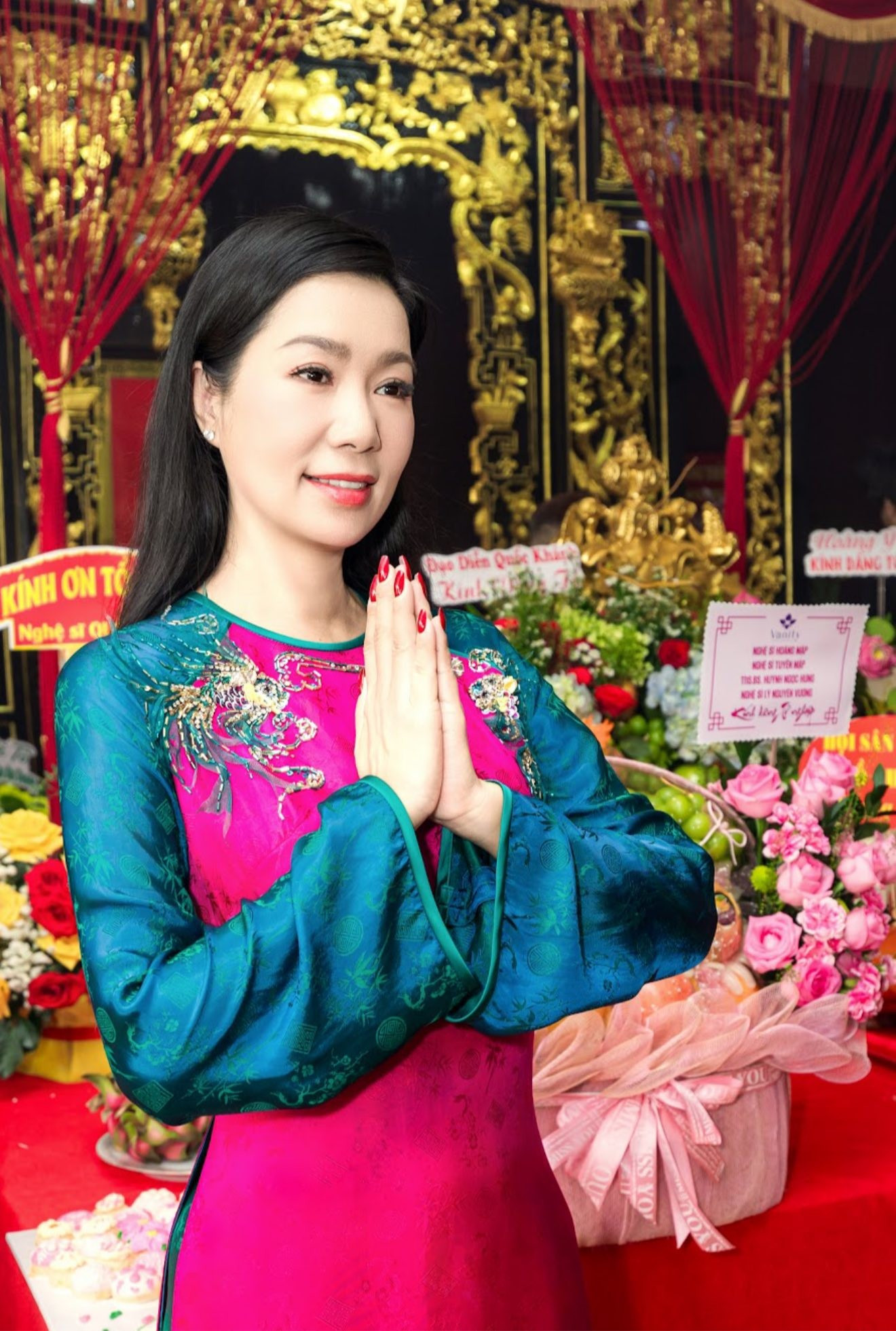 NSND Trịnh Kim Chi đăng ảnh giỗ Tổ tại Nhà truyền thống Sân khấu TPHCM. "Chúng ta cũng cầu mong Tổ nghiệp ban ơn để khán giả mộ điệu luôn yêu quý, coi sân khấu như thánh đường. Văn nghệ sĩ yêu thương, đoàn kết để cống hiến cho nghệ thuật, công chúng những tác phẩm giá trị", cô nói.