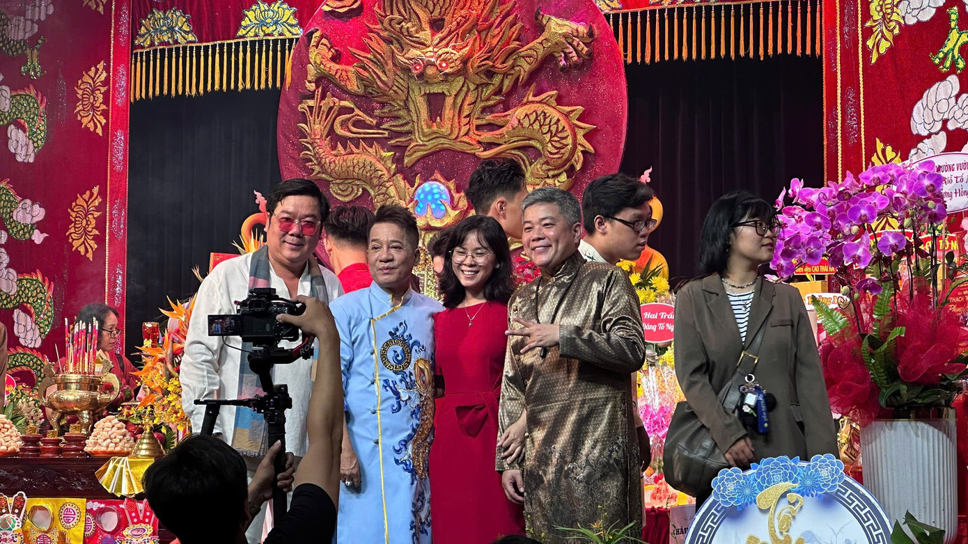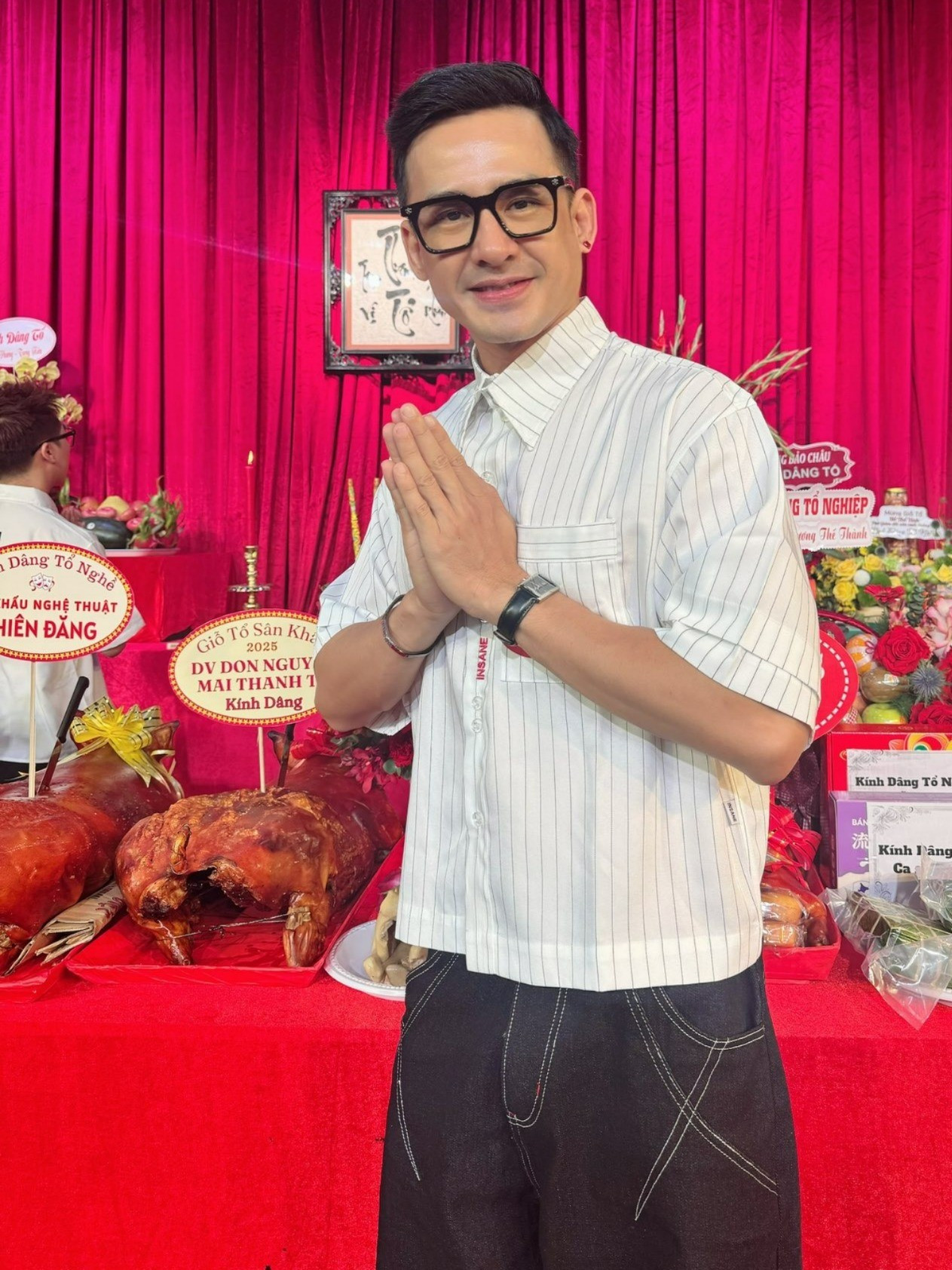 Nam nghệ sĩ tươi tắn tại buổi cúng tri ân Tổ nghề dịp giỗ sân khấu 12/8 (Âm lịch).