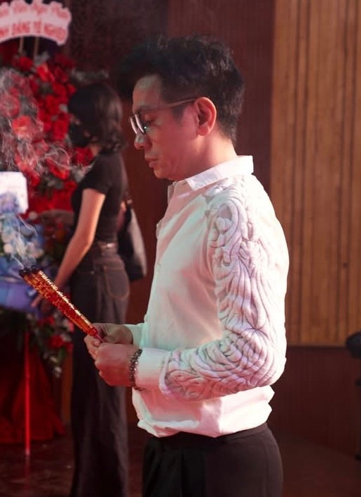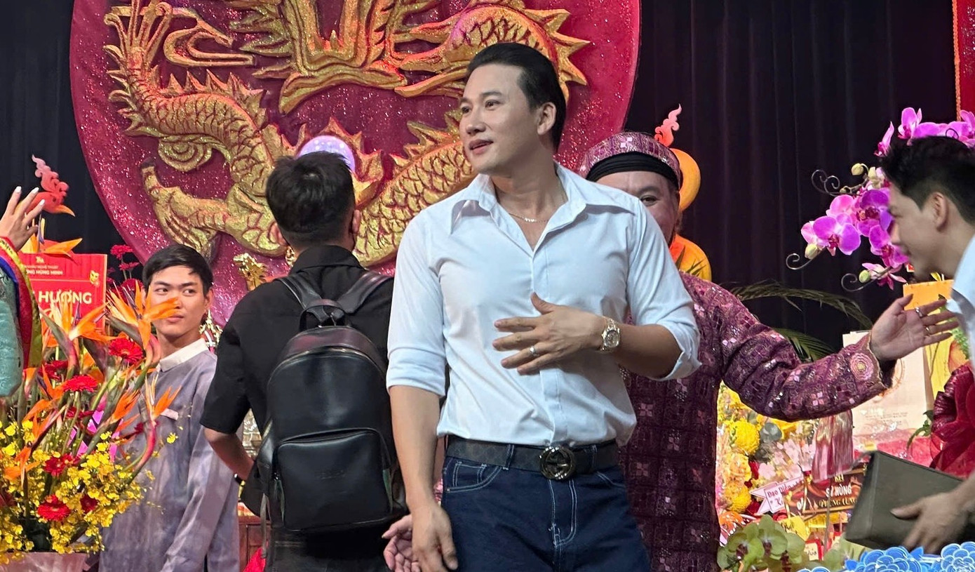 Nghệ sĩ Hà Trí Quang đến giỗ Tổ tại sân khấu của NSƯT Minh Nhí.