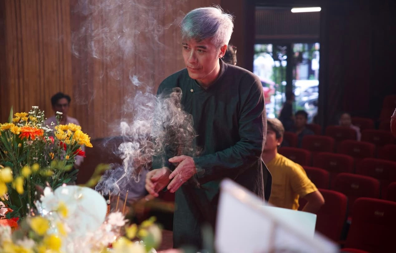 Nhà hát kịch Idecaf cũng tổ chức cúng Tổ sân khấu sớm. Đại Nghĩa nhận được nhiều lời hỏi thăm sức khỏe từ đồng nghiệp, học trò sau sự cố ngã trật khớp vai.
