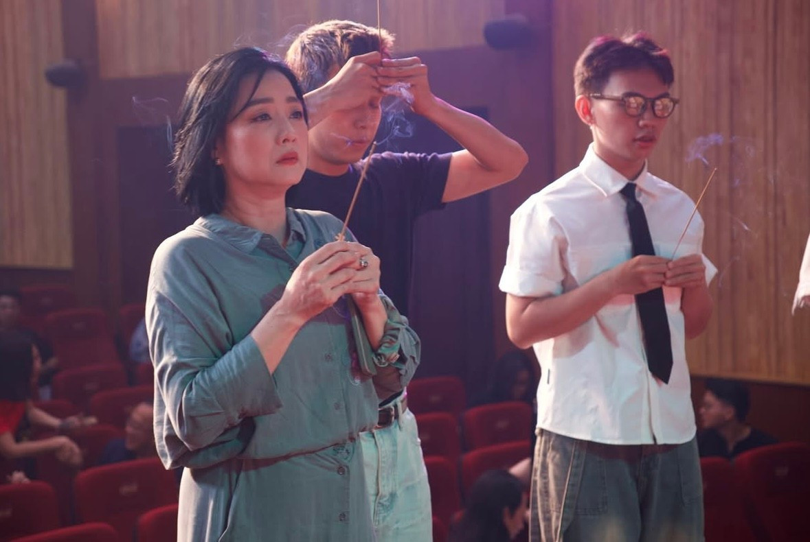Diễn viên Trần Bảo Sơn đăng ảnh giỗ Tổ cùng NSND Kim Xuân, NSƯT Hữu Châu tại sân khấu kịch Thiên Đăng.