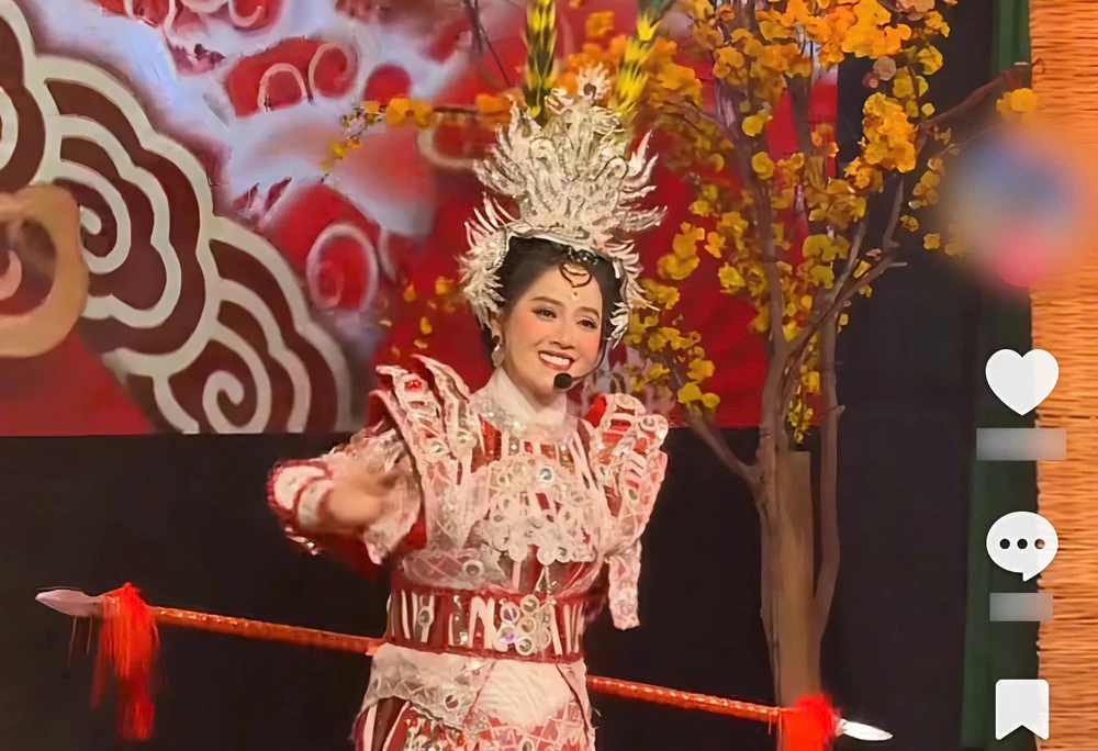 Hồng Loan (con nuôi cố NSƯT Vũ Linh) trong một chương trình ca nhạc. Ảnh: Chụp màn hình