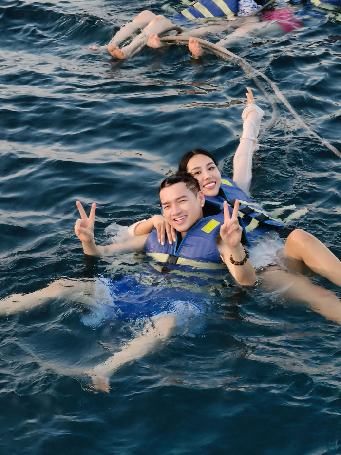 Nghệ sĩ Quang Minh và vợ 9X thoải mái tận hưởng cuộc sống hôn nhân vui vẻ, hạnh phúc. Ảnh: FBNV