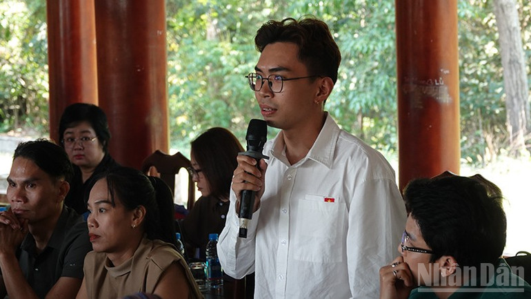 Trong khuôn khổ buổi sinh hoạt chuyên đề, các nghệ sĩ đã dâng hương tại Bia ghi danh liệt sĩ Liên xã; tham quan, dâng hương Nhà lưu niệm Thi tướng Huỳnh Văn Nghệ. Huỳnh Văn Nghệ là một người dân Nam Bộ vừa cầm súng, vừa cầm bút bước vào kháng chiến, sau đó trở thành một nhà chỉ huy quân sự tài ba, một nhà thơ nổi tiếng, được nhân dân yêu quý gọi là “Thi tướng”.