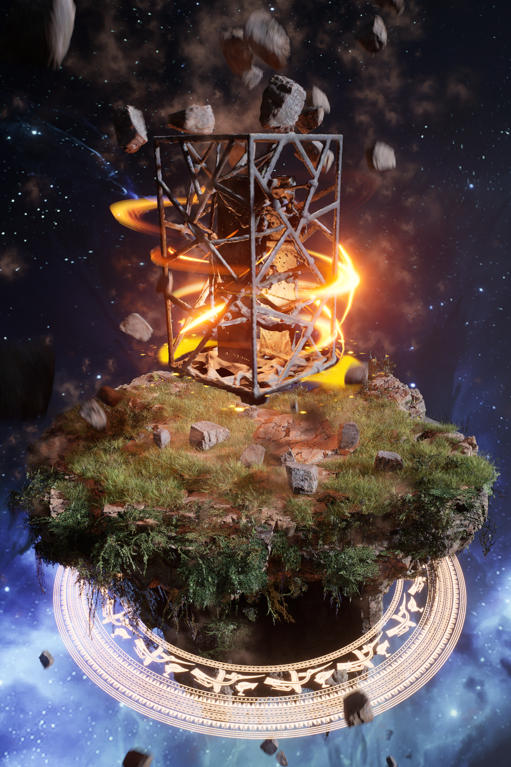 Không gian sắp đặt được tổ chức như hành trình trải nghiệm. Người xem di chuyển qua nhiều lớp không gian khác nhau: từ hệ thống tượng thần, trận đồ bát quái cho đến trung tâm là “Ngôi Nhà” - biểu tượng của con người và đời sống. Kết thúc hành trình là bức sơn mài khổ lớn, nơi các yếu tố văn hóa, lịch sử được đan xen, tạo nên chiều sâu thị giác lẫn ý niệm.