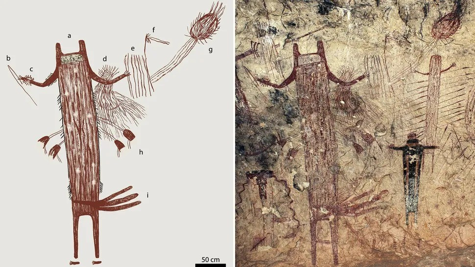 Trong suốt giai đoạn này, phong cách nghệ thuật trên được tìm thấy ở một khu vực được gọi là Lower Pecos Canyonlands vẫn duy trì sự nhất quán đáng kinh ngạc trong hình ảnh và kỹ thuật được sử dụng để tạo ra các bức tranh, dường như tuân theo một bộ quy tắc nghiêm ngặt. Ảnh: adx7205_Figure_fig4_seq4_v1.jpg - Steelman et al., Sci. Adv. 11, eadx7205, Illustration by Carolyn E. Boyd.