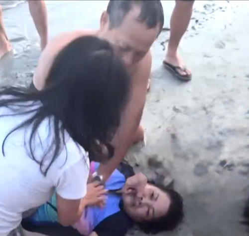 Nạn nhân vùng vẫy cố thoát ra và nhanh chóng bị đuối sức, chìm xuống nước. Nghe tiếng kêu cứu, cựu thiếu tá Vũ Quang Vạn tắm biển gần khu vực trên đã nhanh chóng bơi ra dìu nạn nhân vào bờ an toàn.