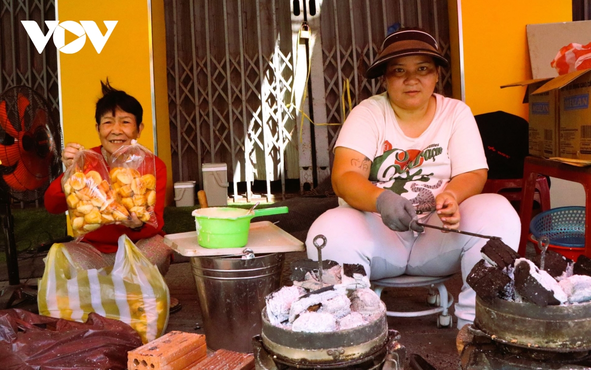 Giữa nhịp sống hiện đại với vô vàn loại bánh kẹo công nghiệp, vẫn có những gia đình giữ trọn hương vị Tết truyền thống bằng nghề làm bánh gia truyền. Tại đường Trần Cao Vân, căn bếp nhỏ của gia đình chị Nguyễn Thị Thủy Tiên những ngày này luôn đỏ lửa. Những khuôn bánh thuẫn bằng đồng đã nhuốm màu thời gian, nhưng vẫn đều đặn cho ra những mẻ bánh vàng ươm, thơm lừng. Giữa mùi than củi, hương bánh thơm lan tỏa, ký ức về Tết xưa dường như được đánh thức trong lòng nhiều người.