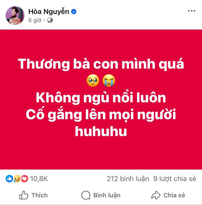 Vào giữa đêm, Hòa Minzy bất ngờ đăng tải tâm thư lên trang cá nhân: "Thương bà con mình quá, không ngủ nổi luôn. Cố gắng lên mọi người". Dù chỉ là vài dòng ngắn ngủi nhưng lại đủ để nói lên nỗi lòng của nữ ca sĩ khi dõi theo từng diễn biến của lũ lụt. Nỗi lo, sự bất lực và tình thương dành cho người dân hiện rõ trong câu chữ khiến ai đọc cũng cảm thấy nghẹn ngào bởi trong vài ngày qua, nhiều tỉnh thành miền Trung liên tục hứng chịu các đợt mưa lớn, nước lũ dâng cao khiến nhiều nhà chìm trong biển nước. Không ít hộ gia đình buộc phải di dời khẩn cấp để tránh nguy hiểm.