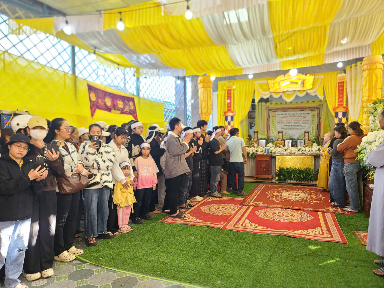Trước giờ di quan, nhiều người đứng lặng, ánh mắt đỏ hoe, không ai nói với ai lời nào. Tiếng khóc nén chặt, tiếng thở dài xen lẫn tiếng tụng kinh khiến không khí tang lễ càng thêm nặng trĩu.