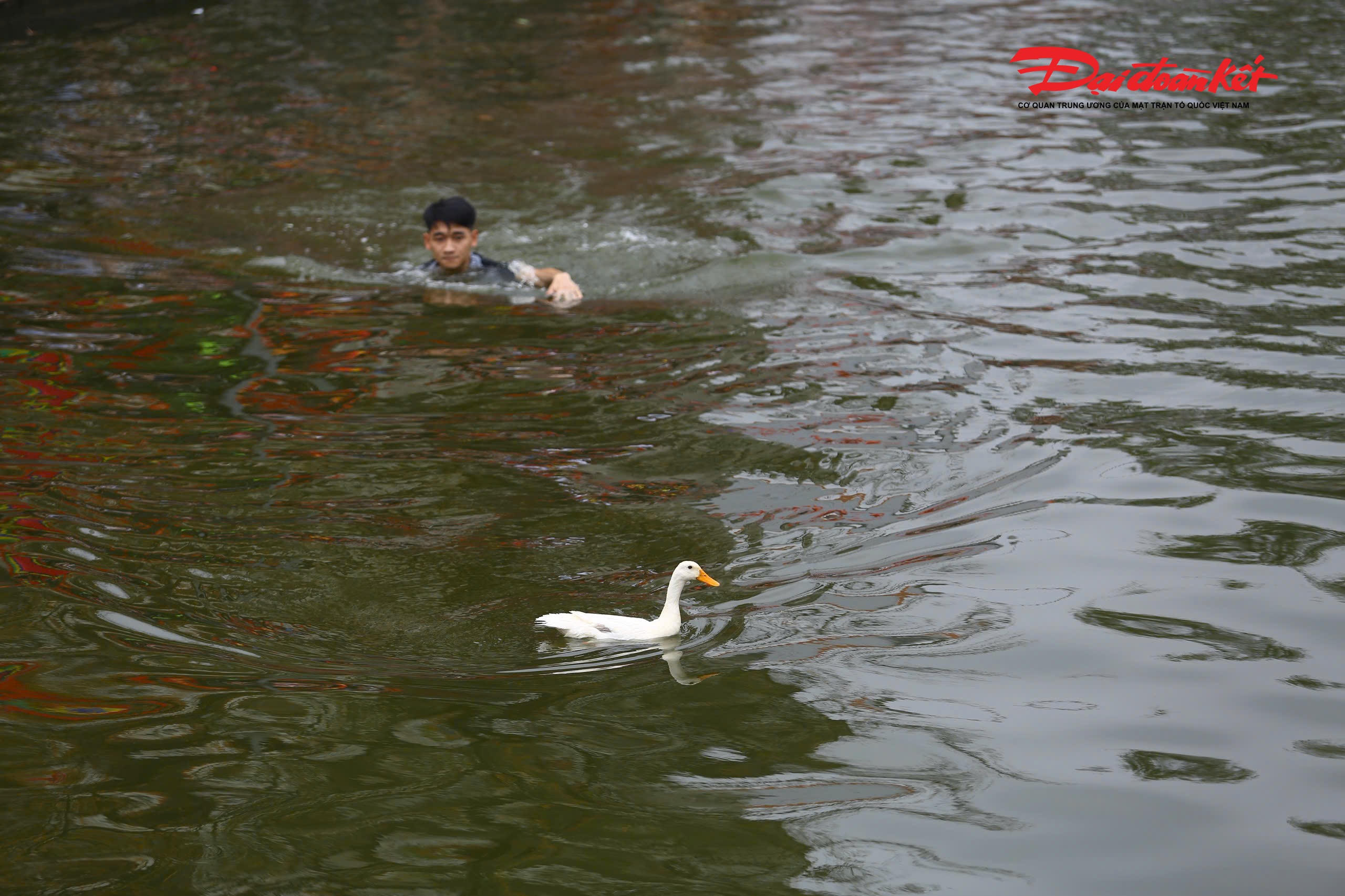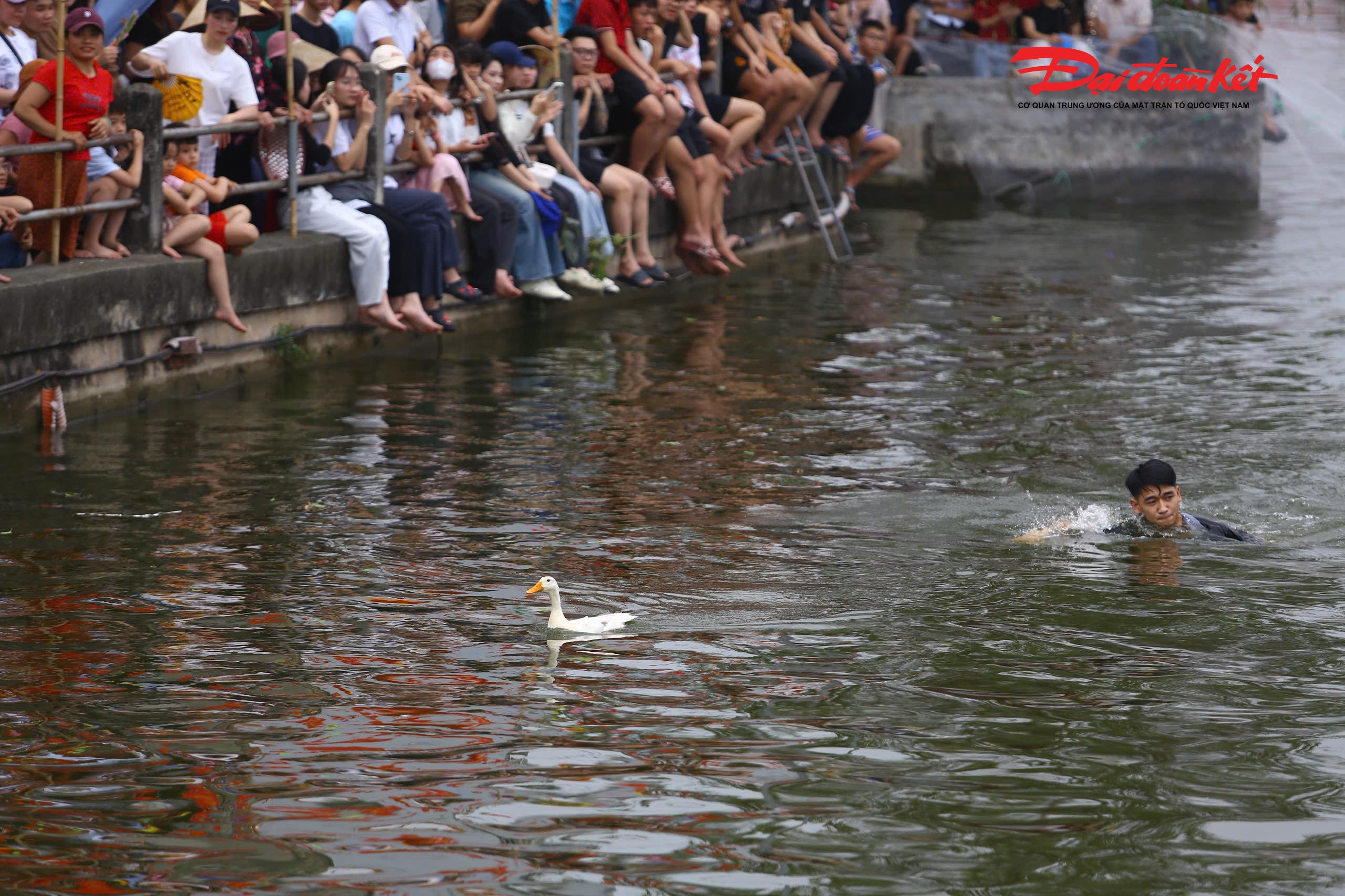 Theo ghi nhận của PV Báo Đại đoàn kết, chiều 28/2, tại đầm nước trước sân đình làng Lại Yên (Hoài Đức, Hà Nội) đã ken đặc người đứng xem. Trên bờ, tiếng trống thúc dồn dập, tiếng reo hò cổ vũ vang dậy cả một vùng. Dưới đầm sâu, hàng chục trai làng mình trần, quần xắn cao hoặc chỉ mặc quần đùi, sẵn sàng lao xuống nước khi hiệu lệnh vang lên.