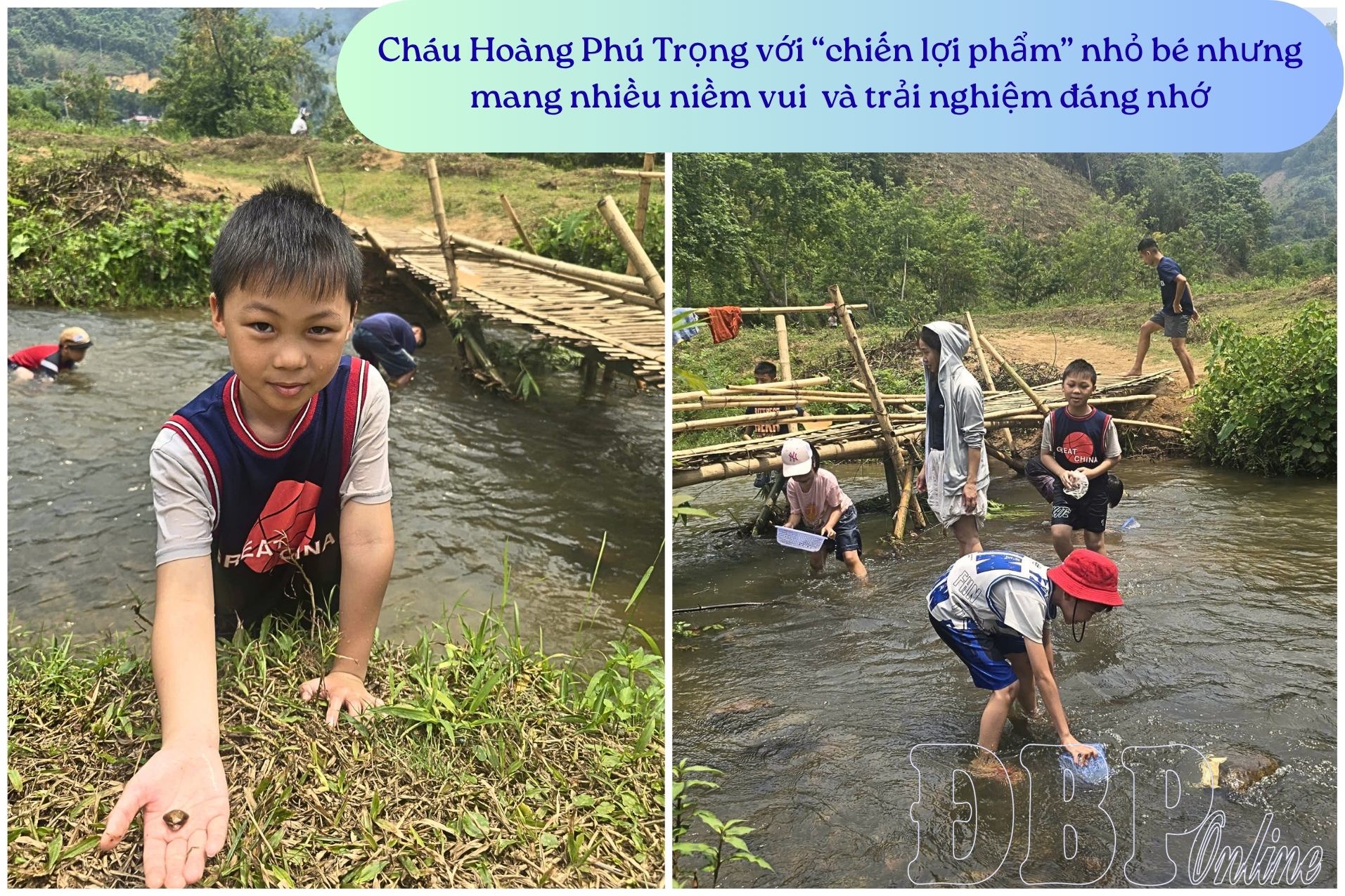 Niềm vui trẻ thơ hiện rõ trên gương mặt cháu Hoàng Phú Trọng (8 tuổi), phường Điện Biên Phủ khi cùng người thân vui chơi tại suối Phiêng Lơi. Cháu hào hứng trải nghiệm đãi hến bằng chiếc rổ nhỏ, tự tay cào và nhặt từng con hến dưới lòng suối. Những “chiến lợi phẩm” nhỏ bé mang lại niềm vui lớn cho cậu bé trong ngày nghỉ lễ.