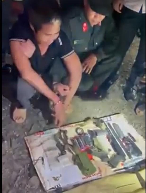 Nghi phạm Lê Sỹ Tùng bị bắt giữ cùng một số bộ phận súng sử dụng trong vụ án.