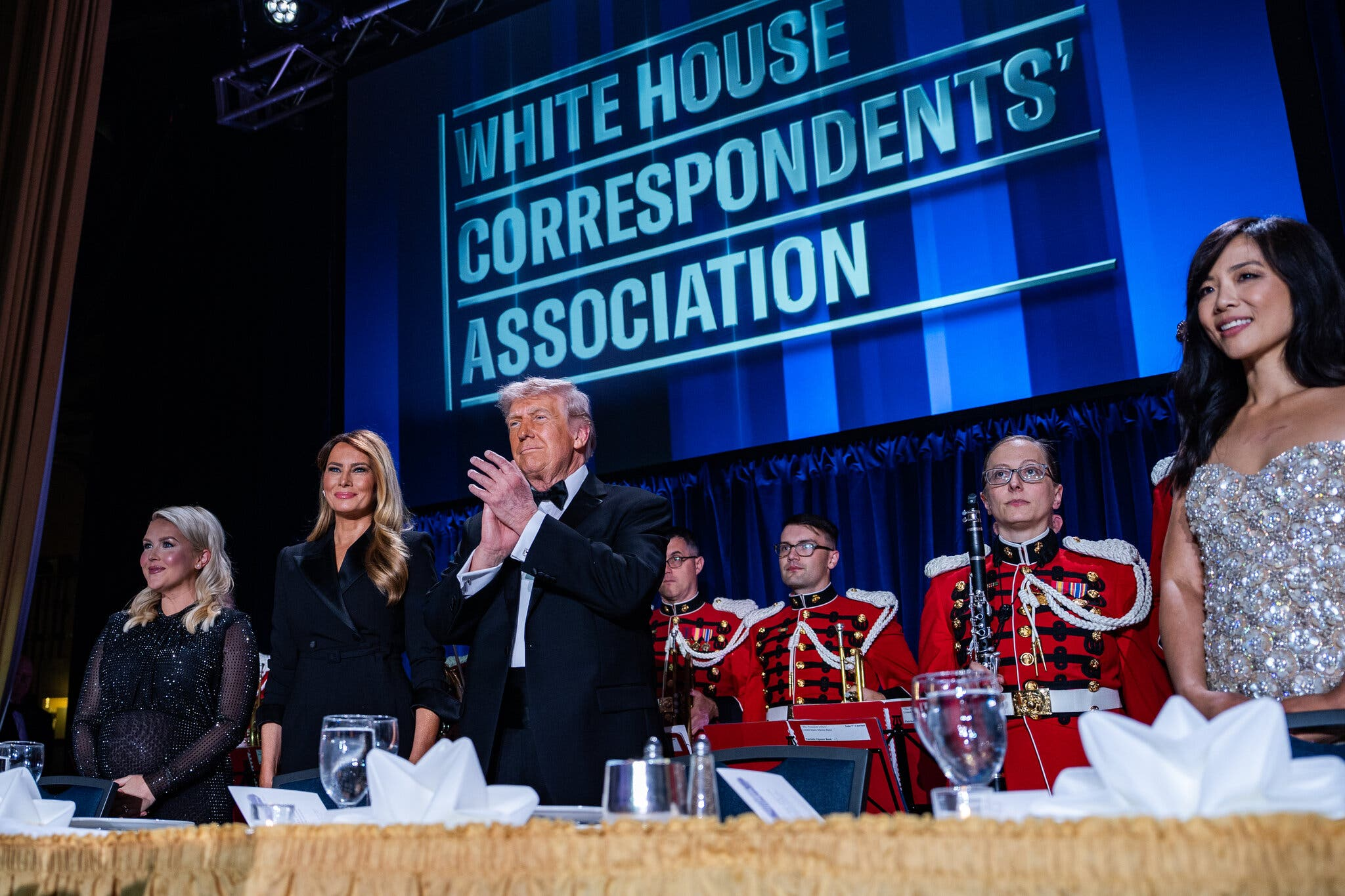 Có mặt tại Tiệc thường niên của Hiệp hội Phóng viên Nhà Trắng đêm 25-4 gồm Tổng thống Trump, Đệ nhất phu nhân Melania Trump, Phó Tổng thống JD Vance, một số thành viên nội các và các nhà lập pháp cấp cao, cùng hàng trăm khách mời.
